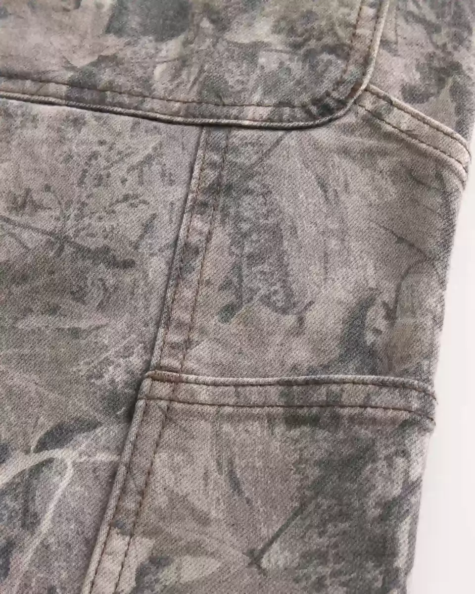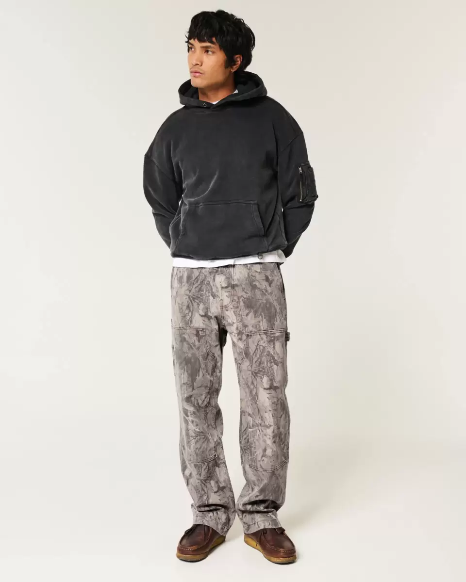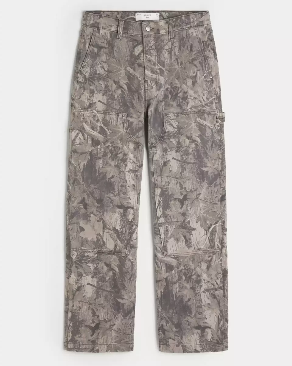 Classic carpenter-style jeans with an all-over camo pattern and baggy leg. Reinforced knee stitching, left loop detail, extra pockets. Imported.
