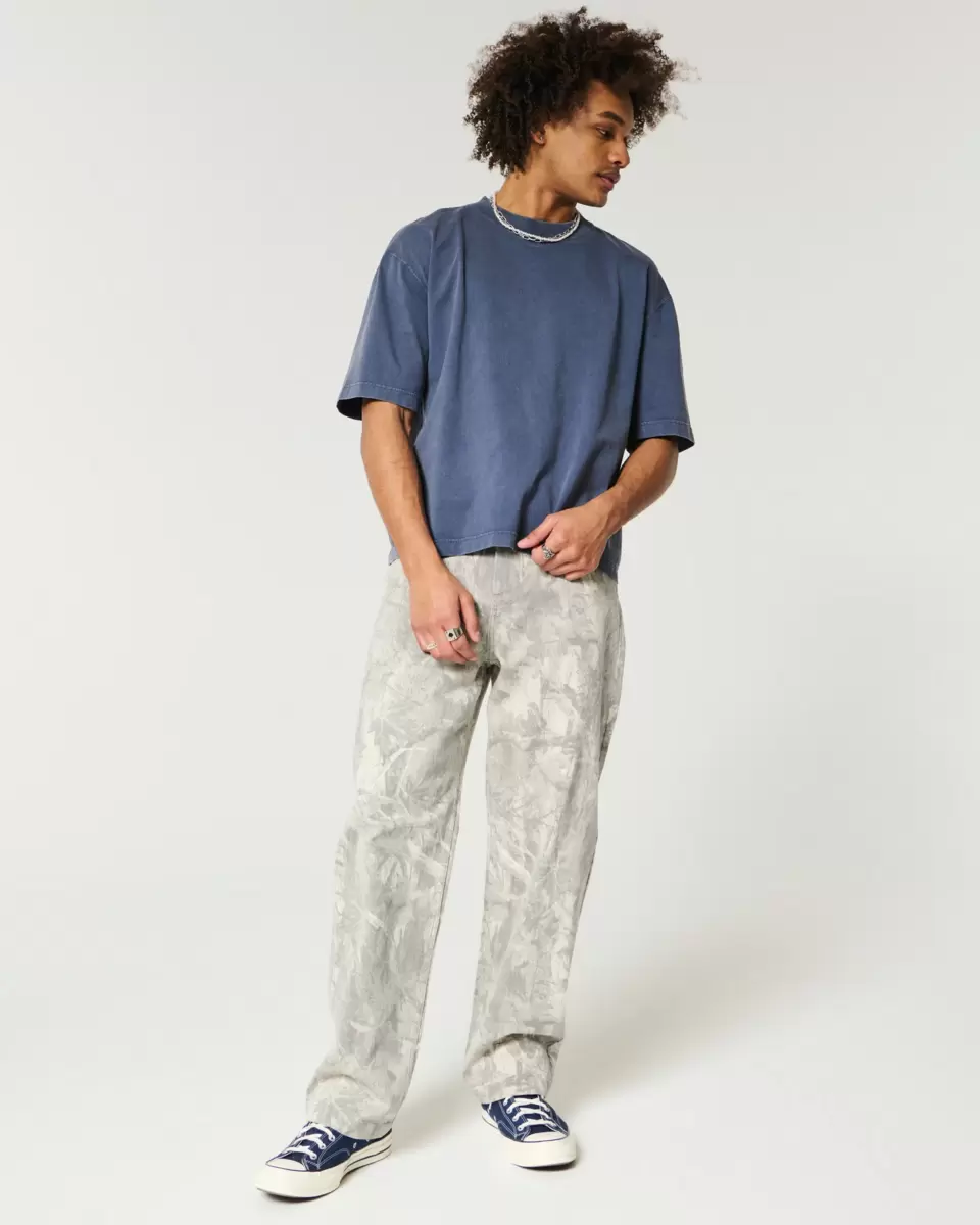 Comfortable denim jeans featuring an all-over camo pattern. Designed with a baggy leg.