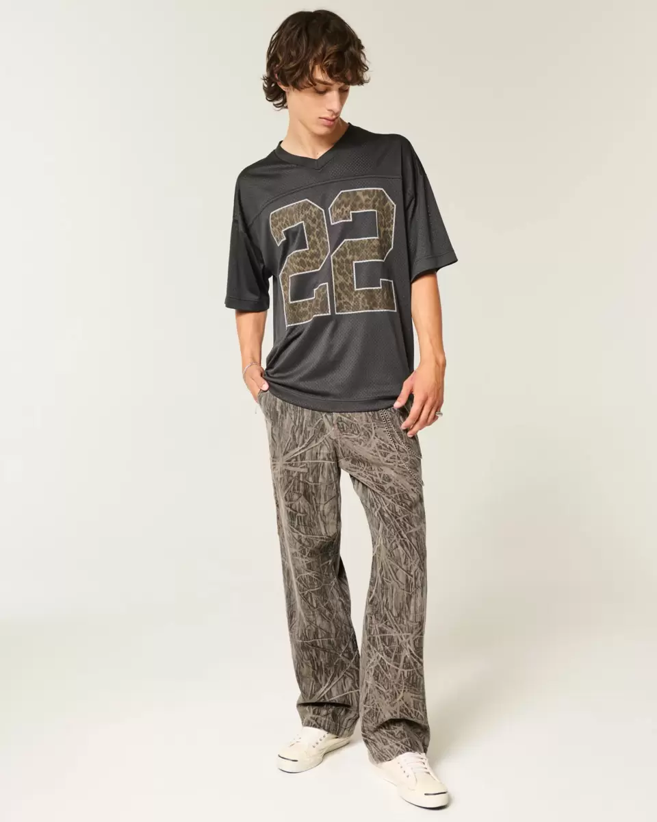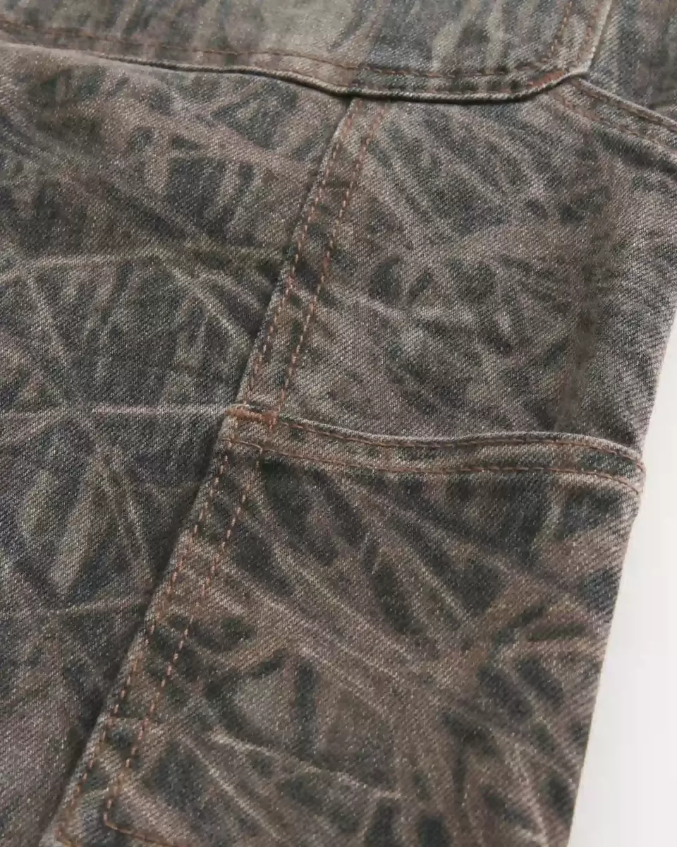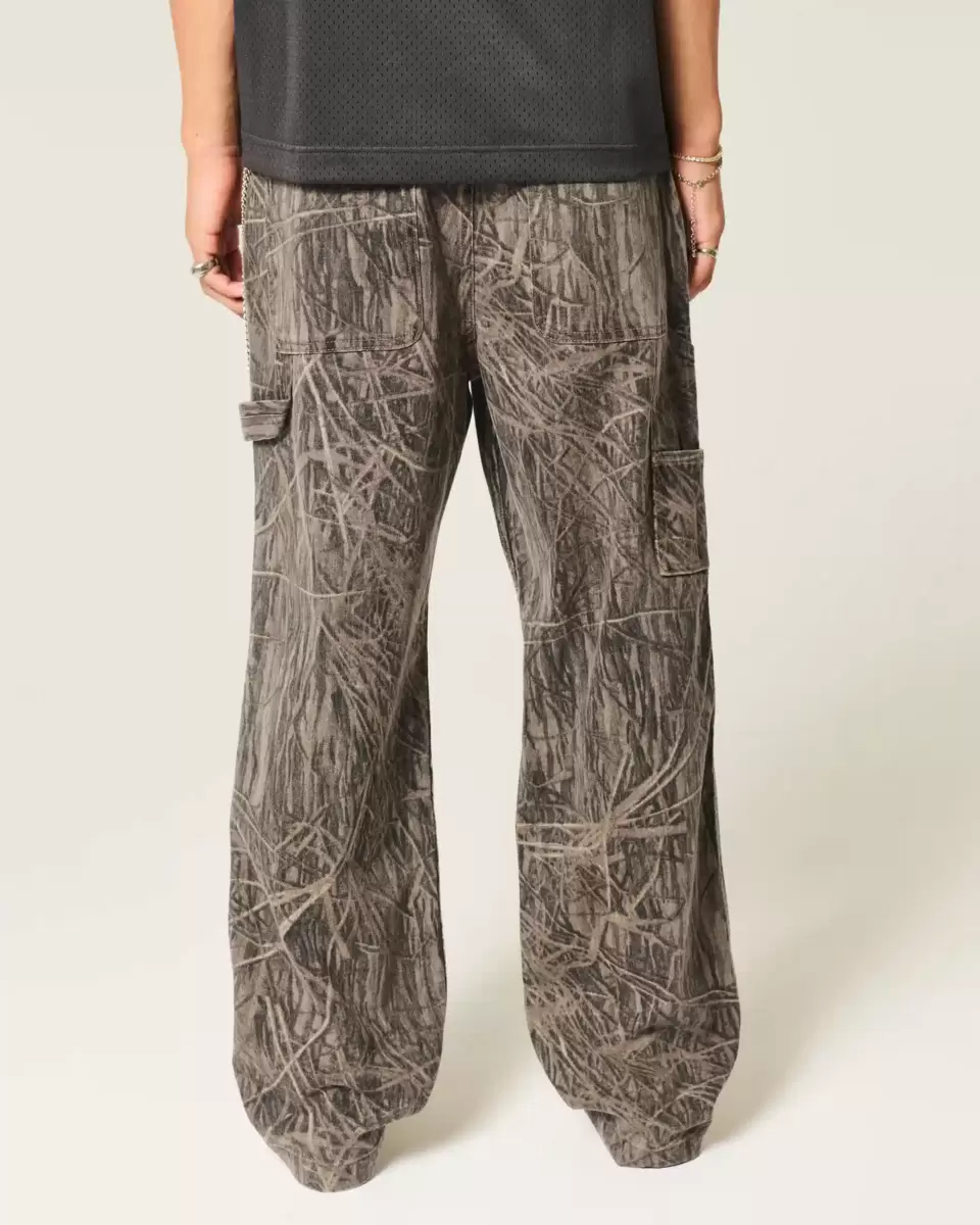 Comfortable denim jeans designed with a baggy leg, left painter loop and extra pockets. All-over camo pattern.