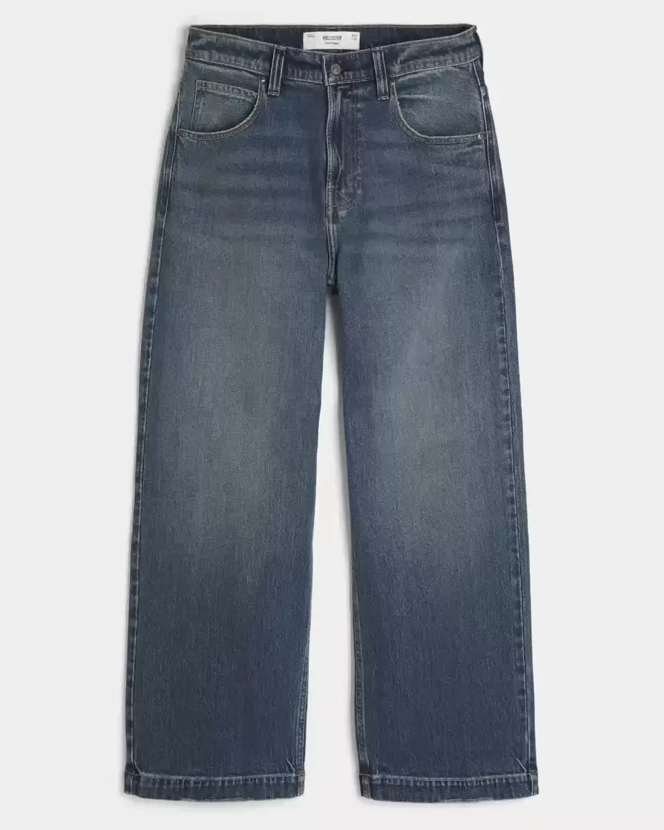 Comfortable denim jeans in a dark wash, designed with a super baggy leg. Embroidered dice graphic at back pocket, fading, whiskering.