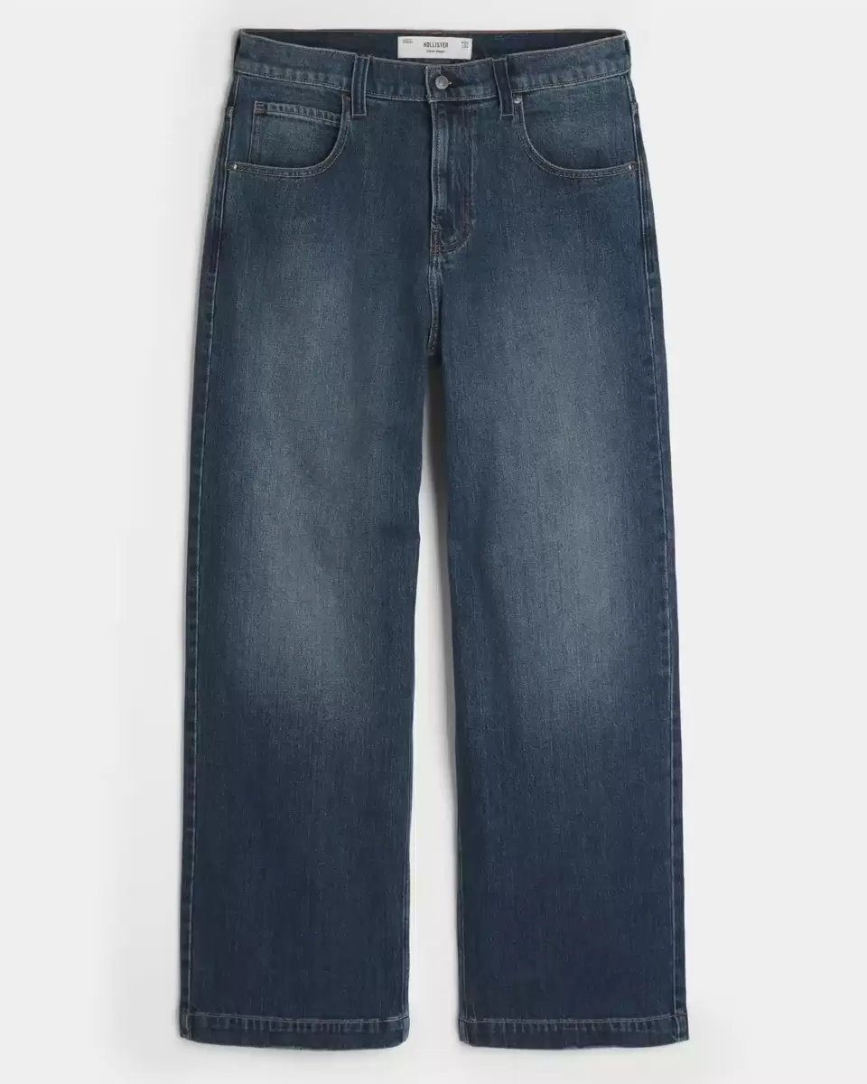 Ultra-comfortable jeans with stretch, designed with a super baggy leg. Logo embroidery at the back pocket, dark wash, fading. Imported.