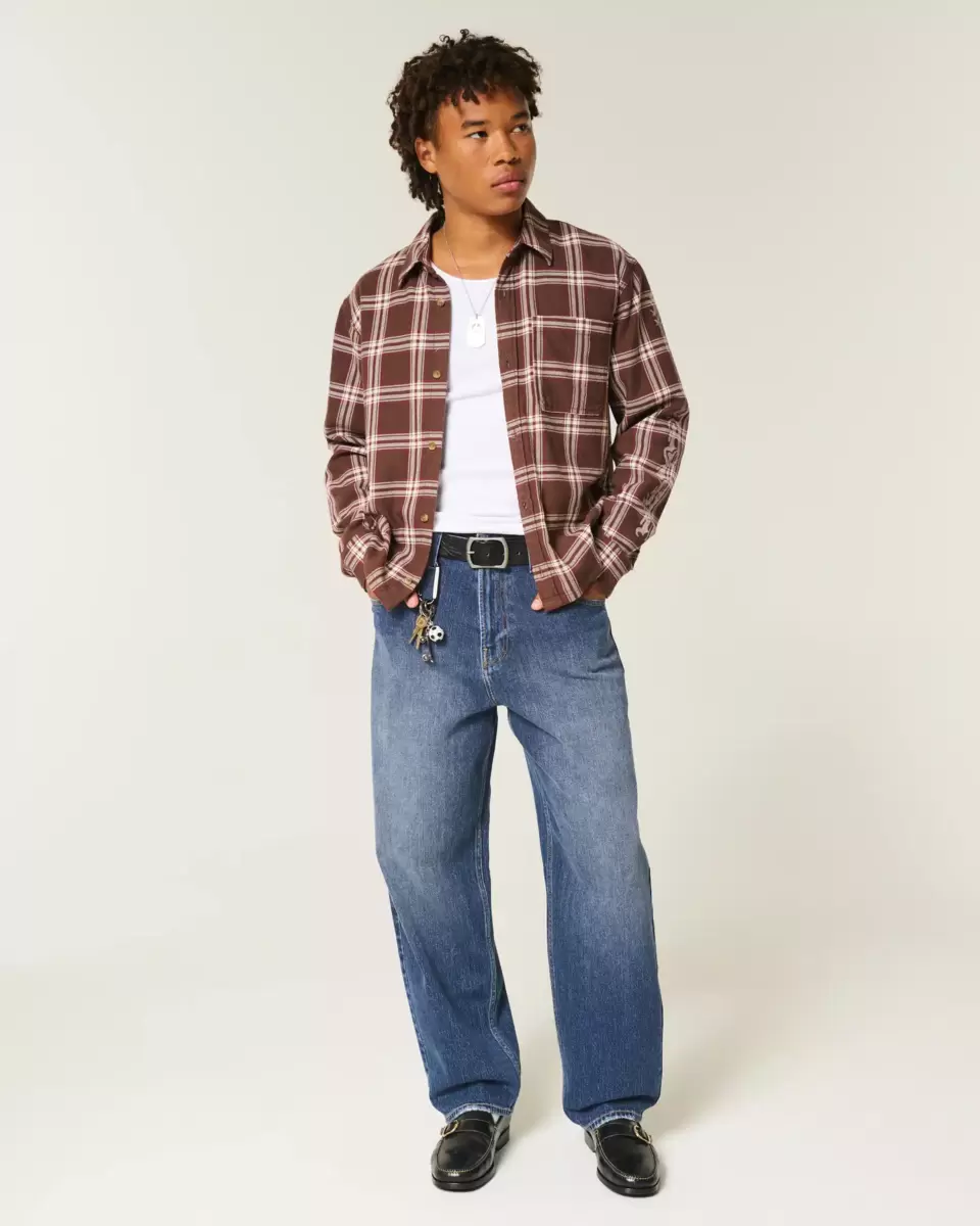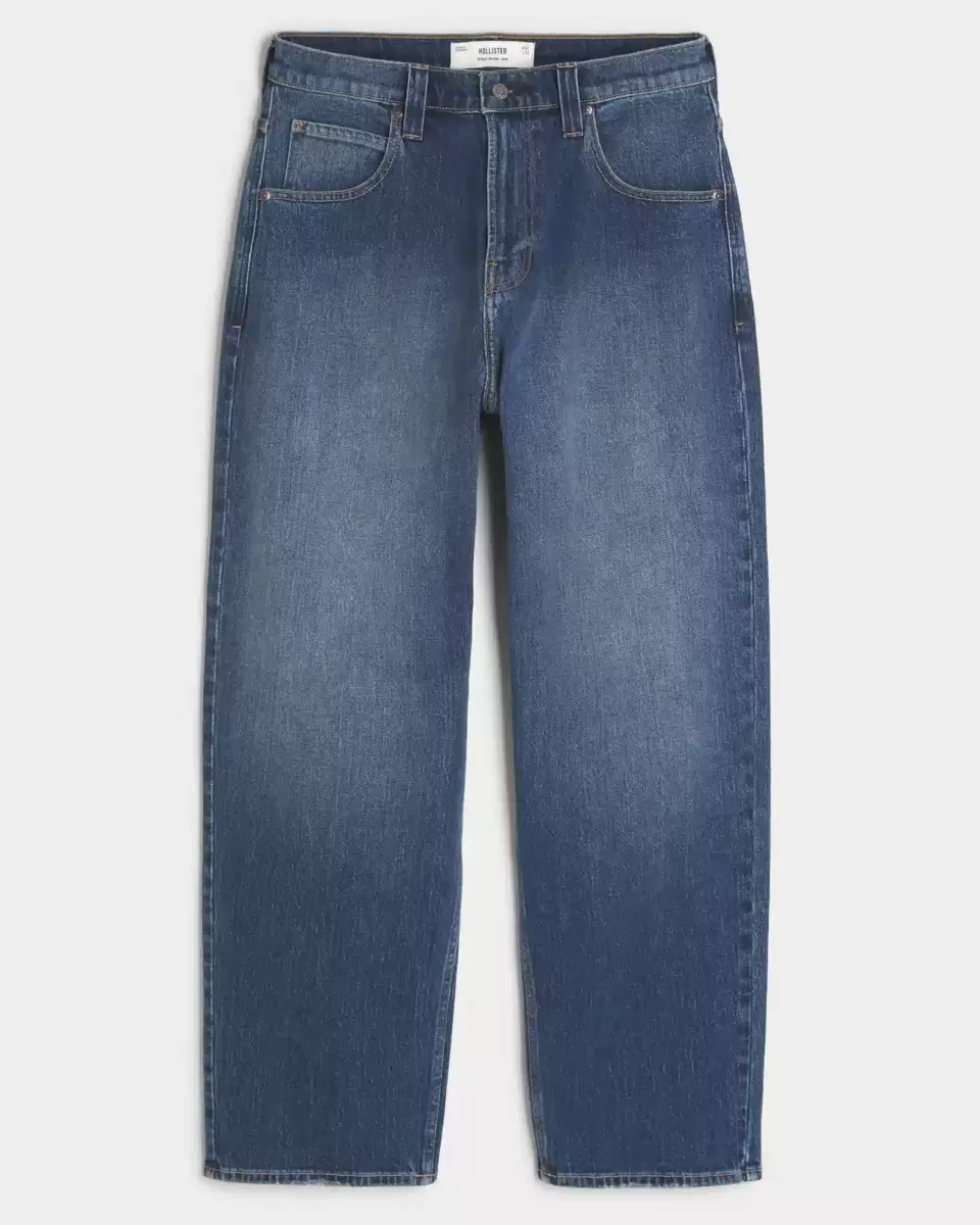 Comfortable denim skater jeans designed with a baggy leg. Dark wash with fading, classic 5-pocket styling. Imported.