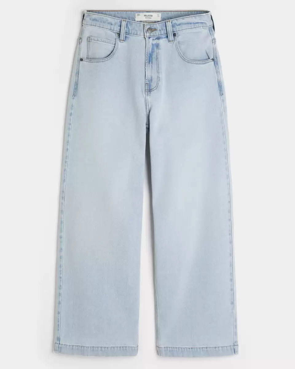 Comfortable denim jeans in a light wash, designed with a super baggy leg. Embroidered New York apple graphic at back pocket. Imported.