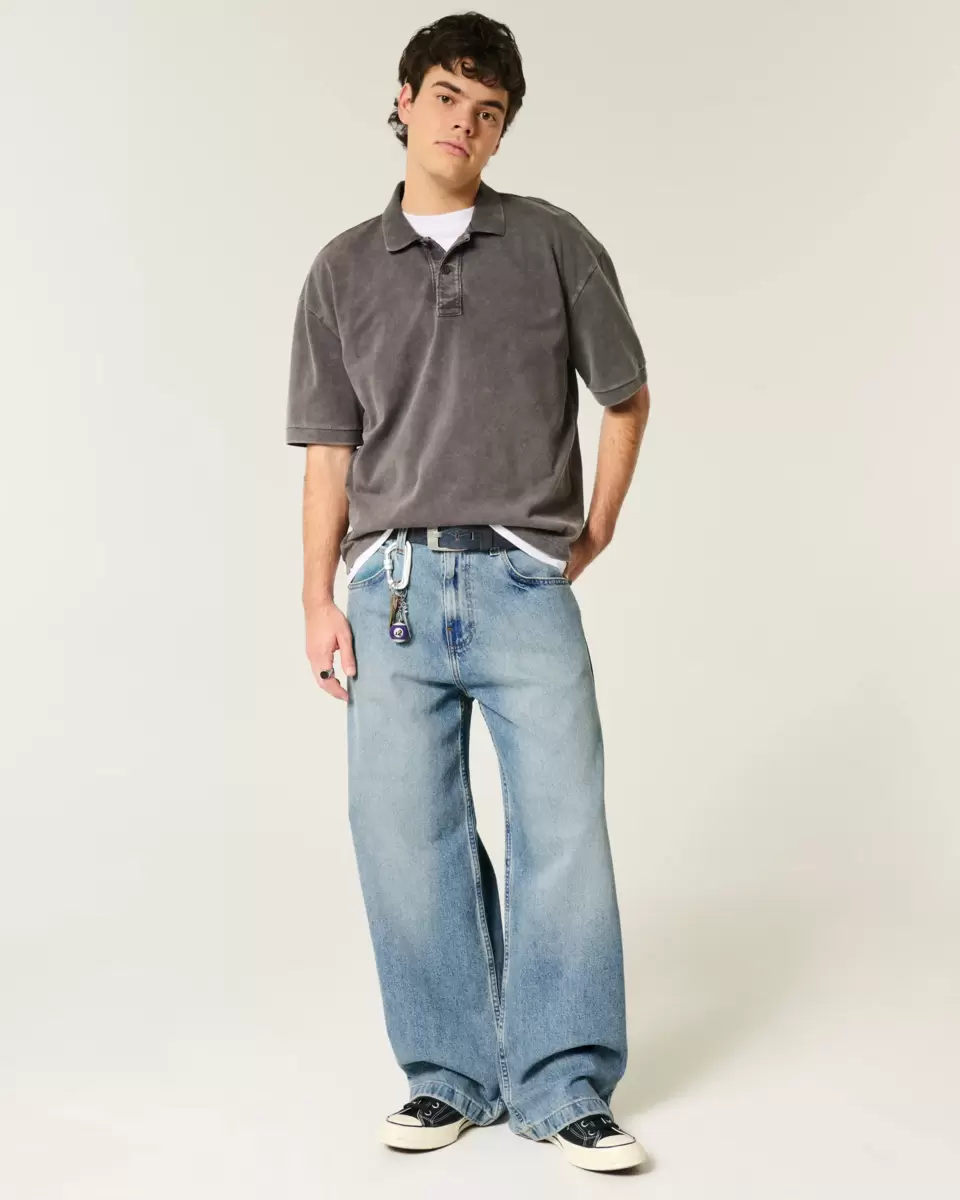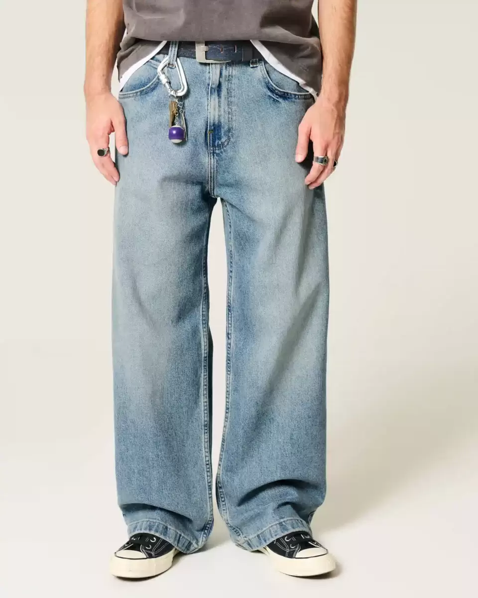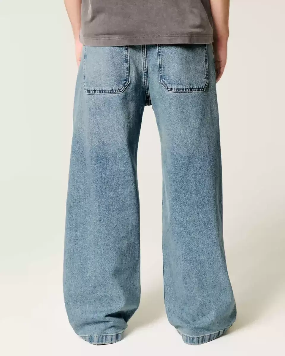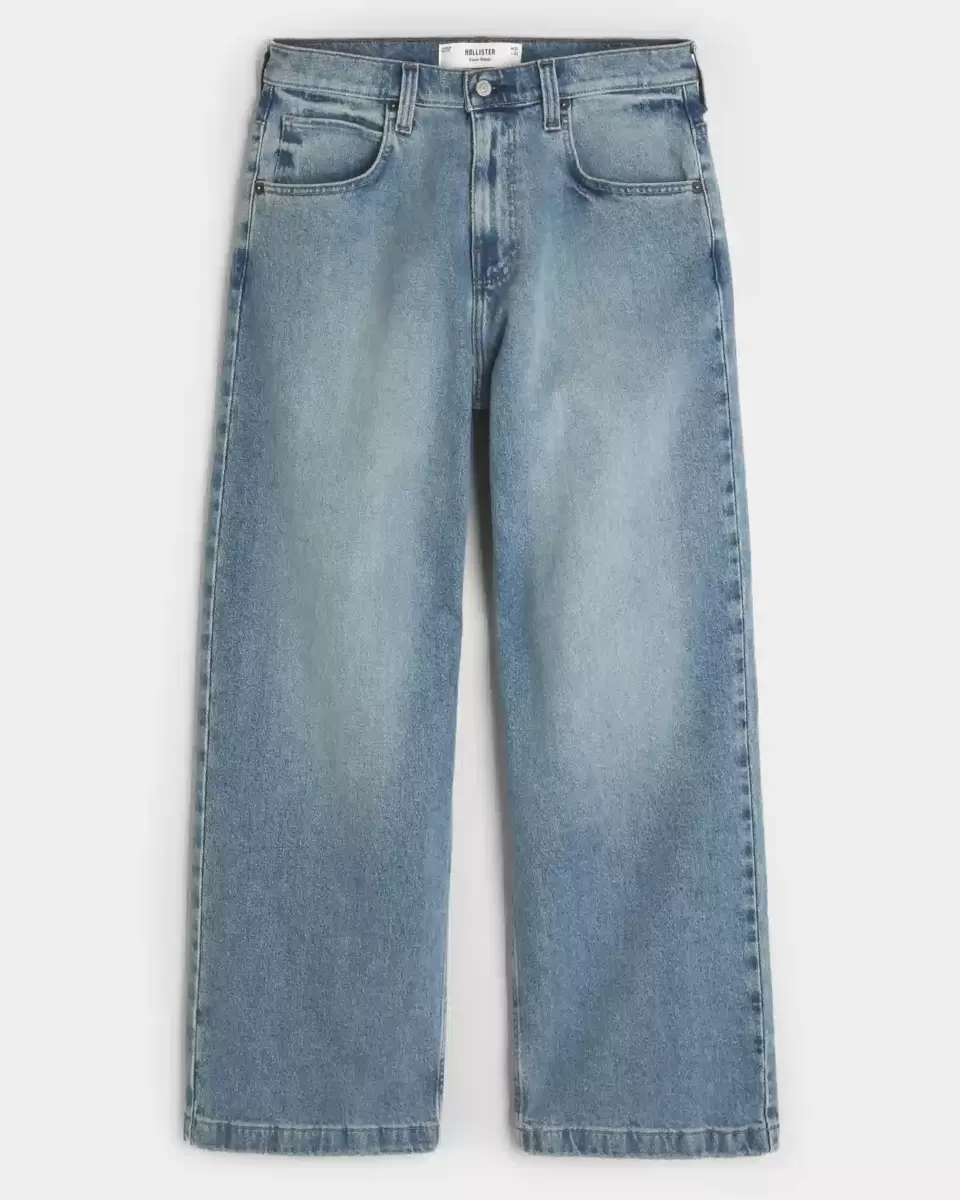 Comfortable denim jeans in a medium wash, designed with a super baggy leg and classic 5-pocket styling. Fading. Imported.