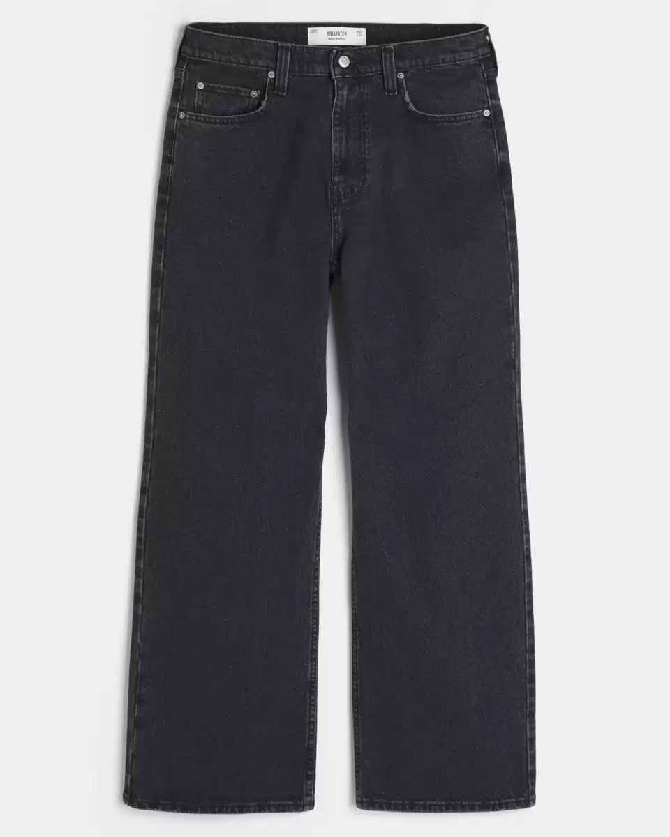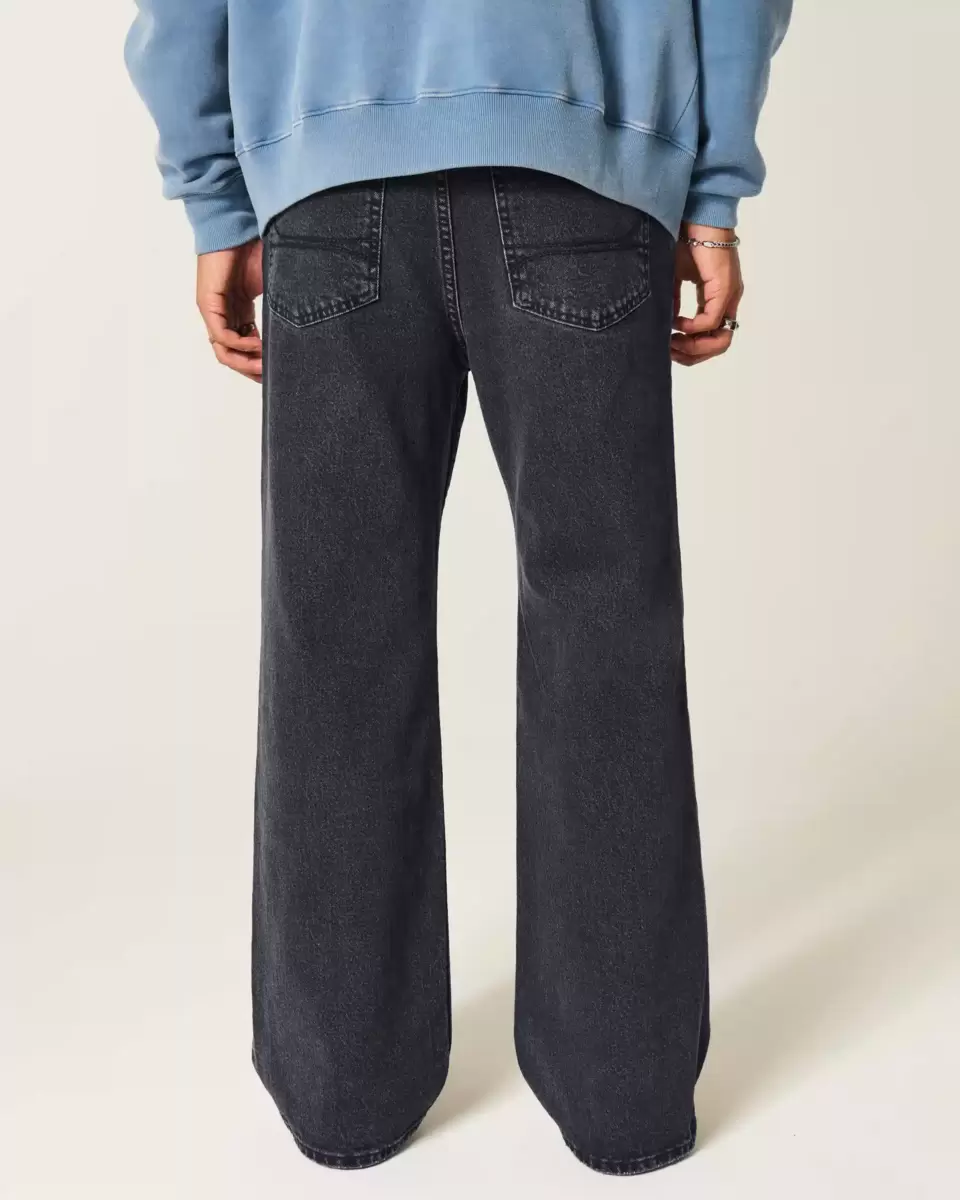 Comfortable denim jeans in washed black, designed with a baggy leg and bootcut opening. Iconic 5-pocket styling. Imported.