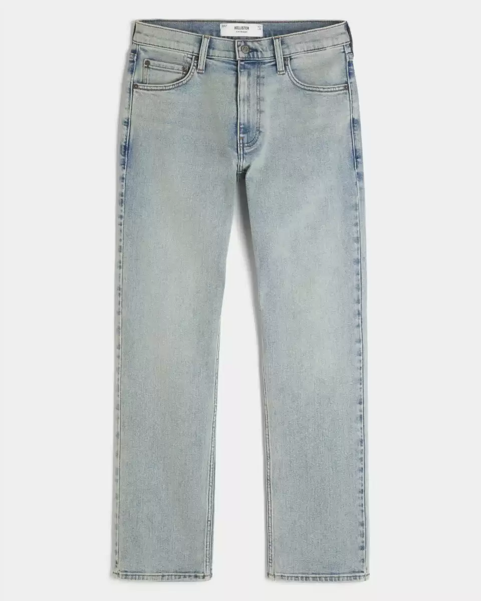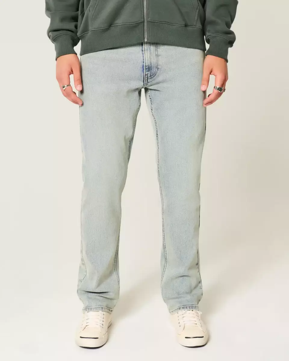 Comfortable Y2K-inspired denim jeans in a light wash, designed with a slim straight leg. Fading, whiskering. Imported.