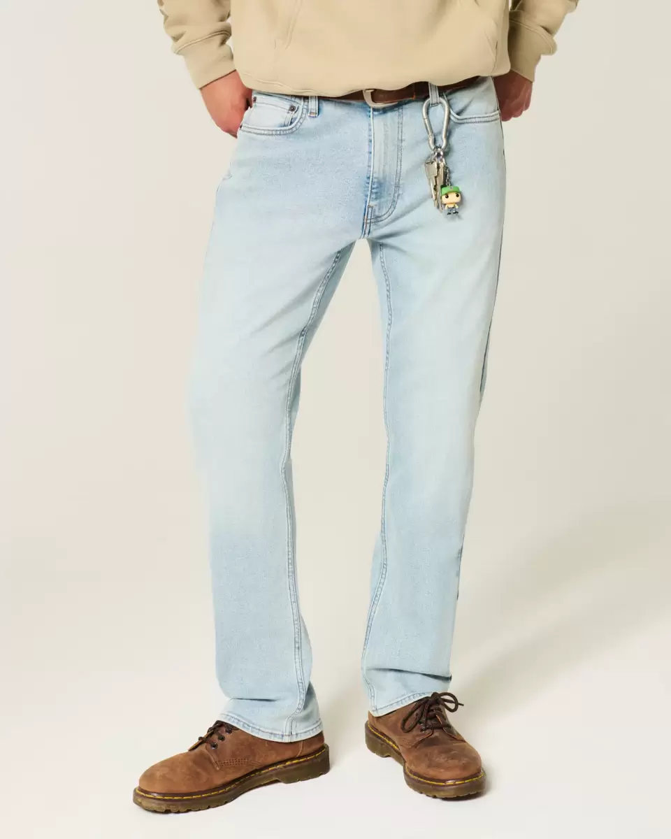 Comfortable denim jeans in a light wash, designed with a slim straight leg. Fading. Imported.
