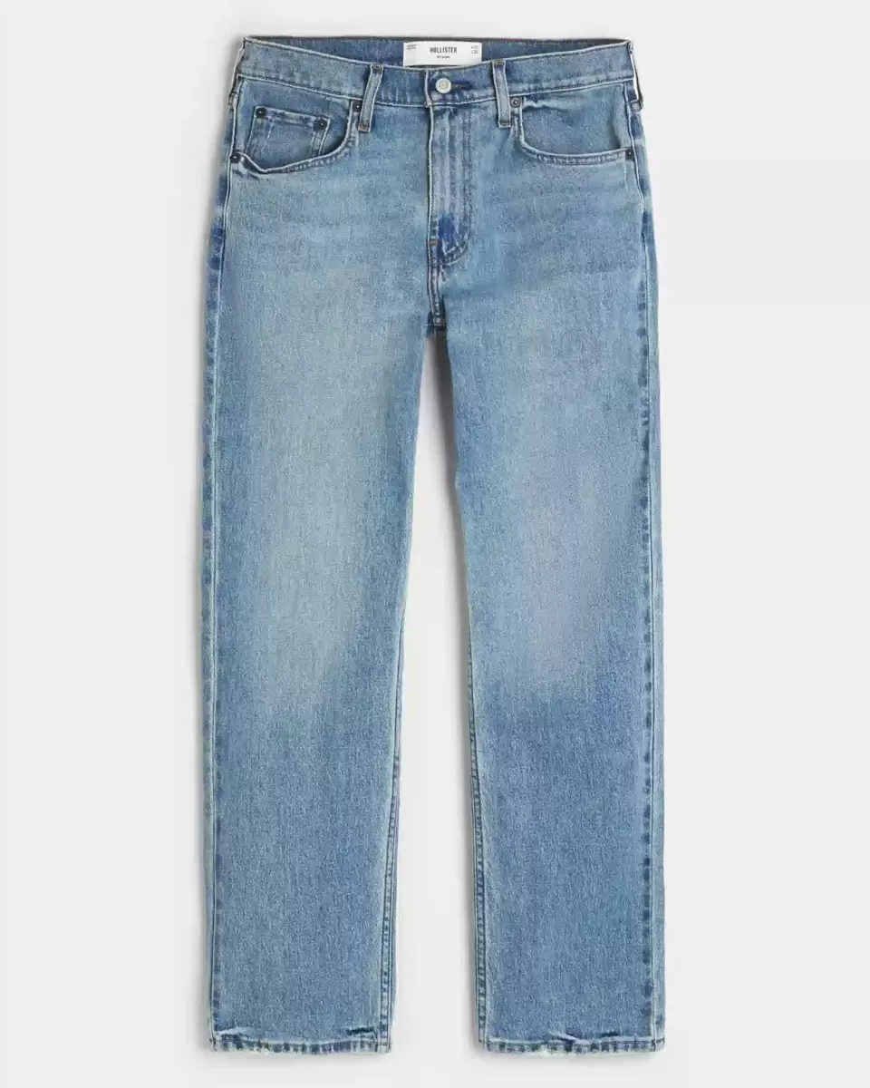 Ultra-comfortable jeans in Vintage Stretch denim in a medium wash, designed with a straight leg. Fading and whiskering.