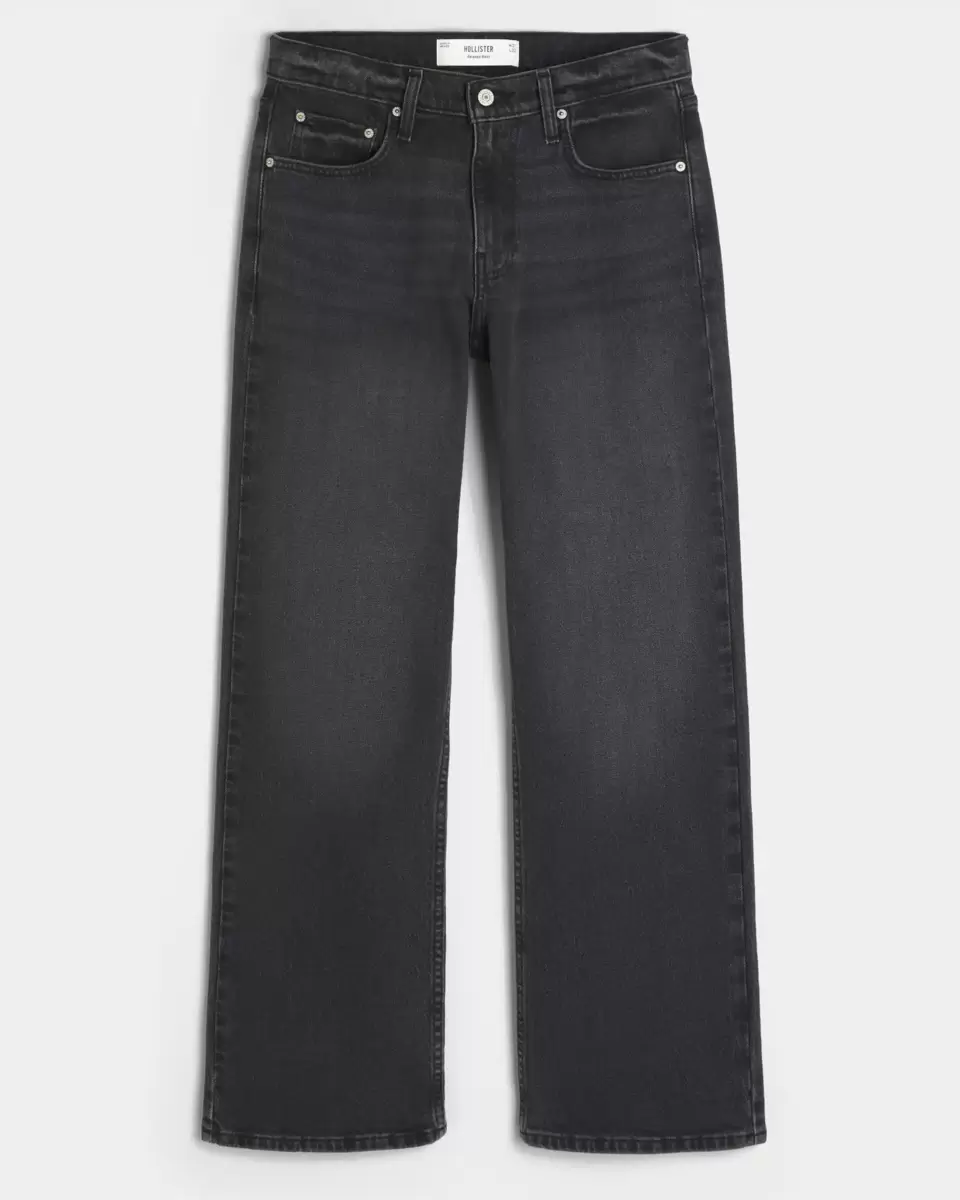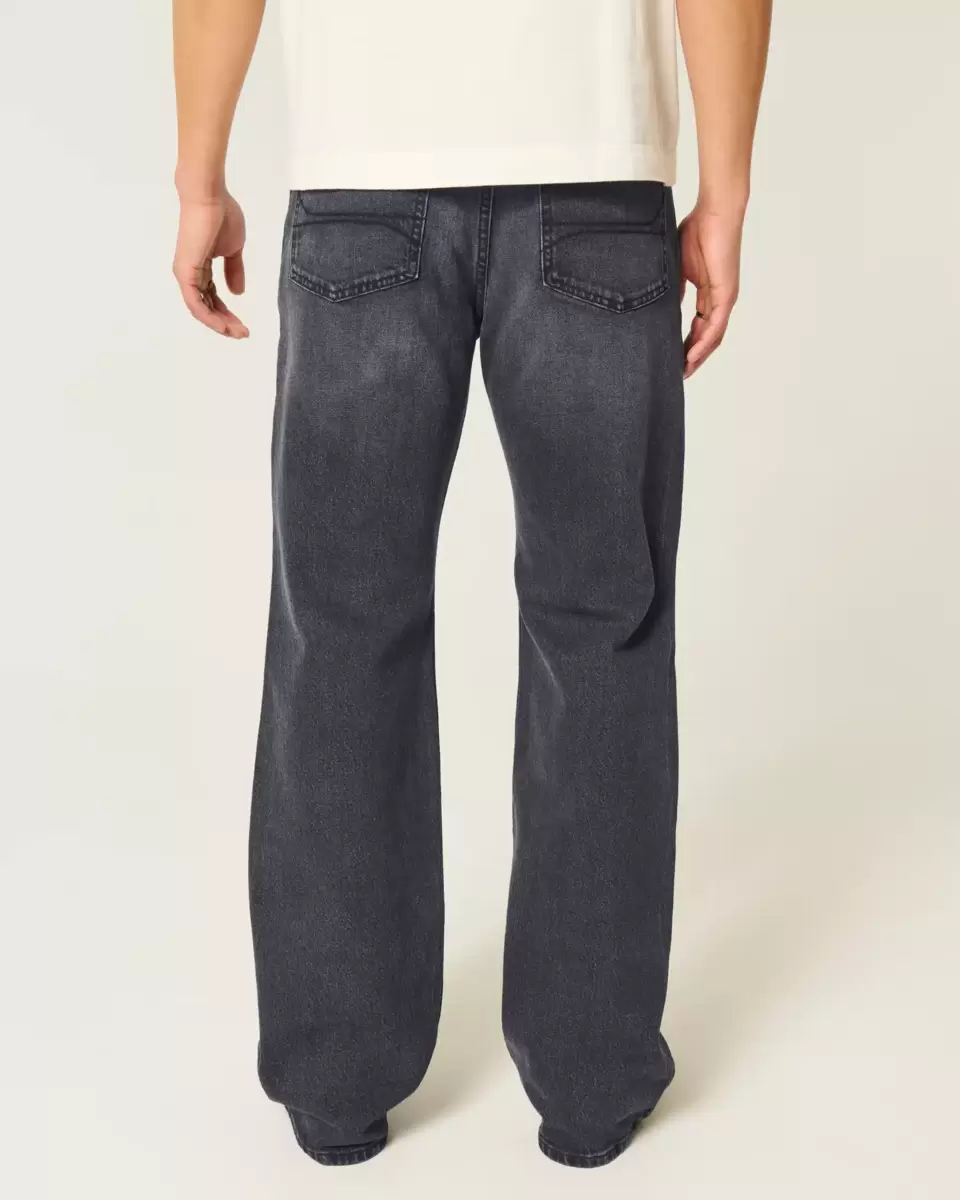 Classic denim jeans in washed black, designed with a relaxed leg and boot opening. Fading, whiskering. Imported.