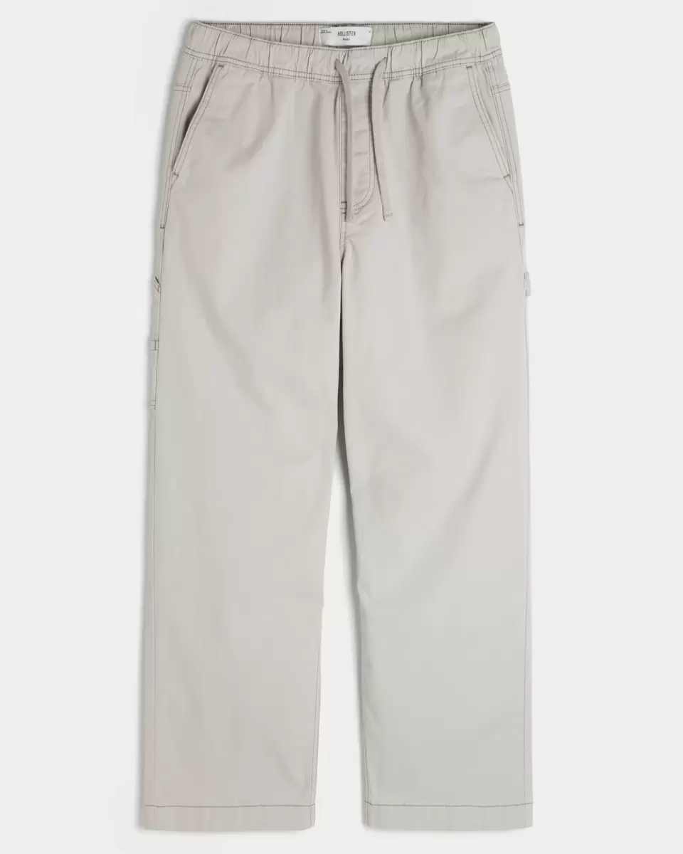 Comfortable twill painter pants designed with a baggy leg. Drawstring waist, extra pockets, embroidered logo detail at back pocket.