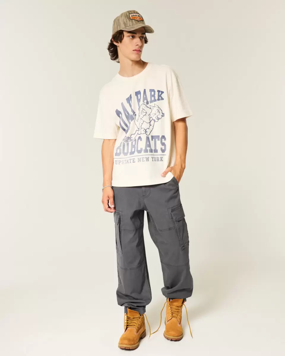 Super comfortable and skater-inspired, these baggy pants feature side cargo pockets. Twill fabric. Imported.