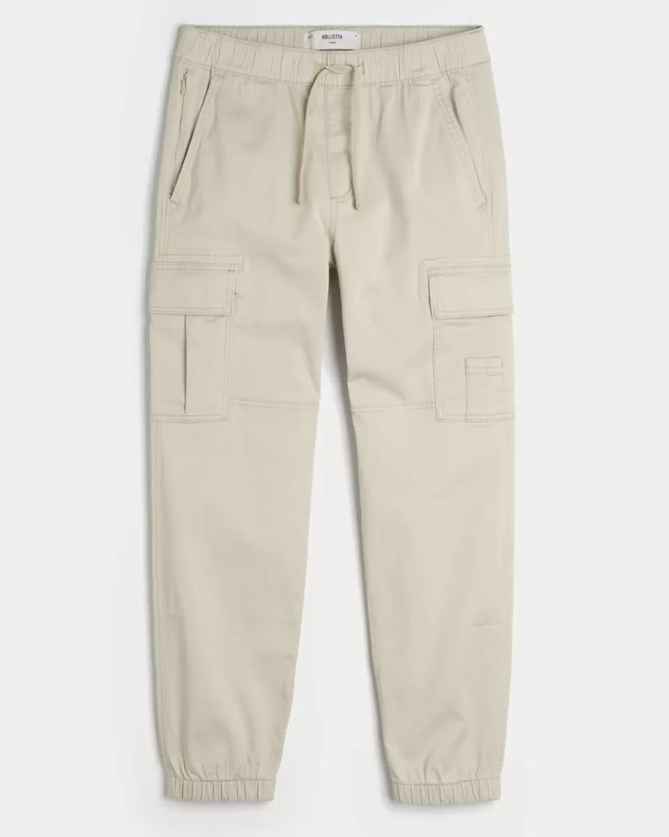 Comfortable twill joggers with a drawstring waist and relaxed leg. Side cargo pockets, front pockets, right zipper pocket, banded hems. Imported.
