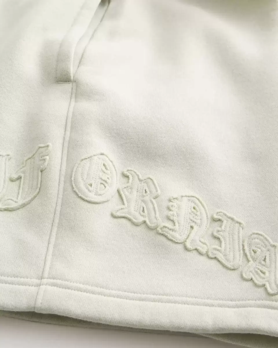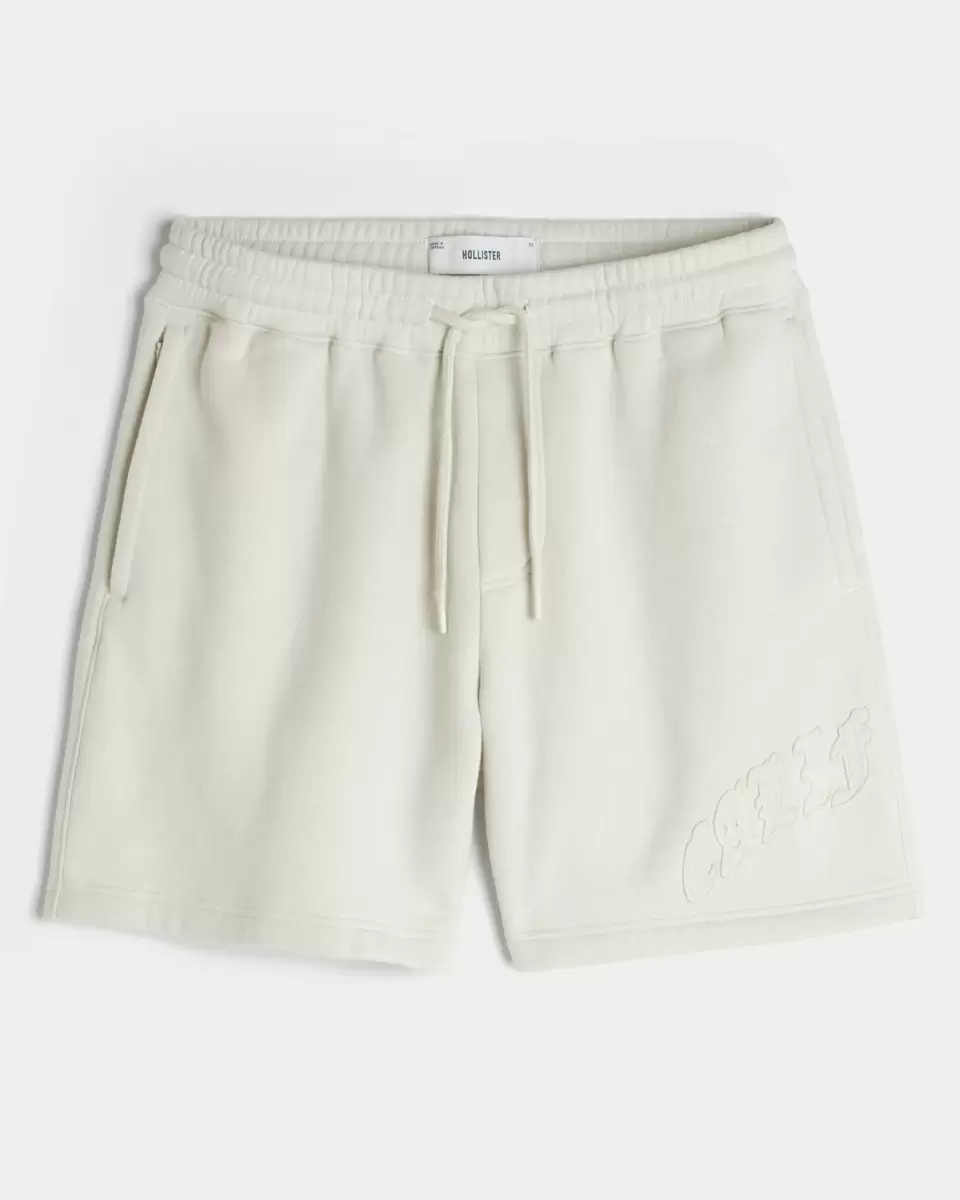 Super soft fleece shorts featuring Calif graphic applique at the left leg. Drawstring waist, pockets, right zipper pocket, above-the-knee length. Imported.