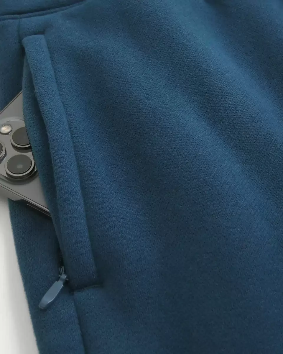 Super soft fleece shorts designed with an above-the-knee length and drawstring waist. Pockets, right zipper pocket, embroidered logo icon. Imported.