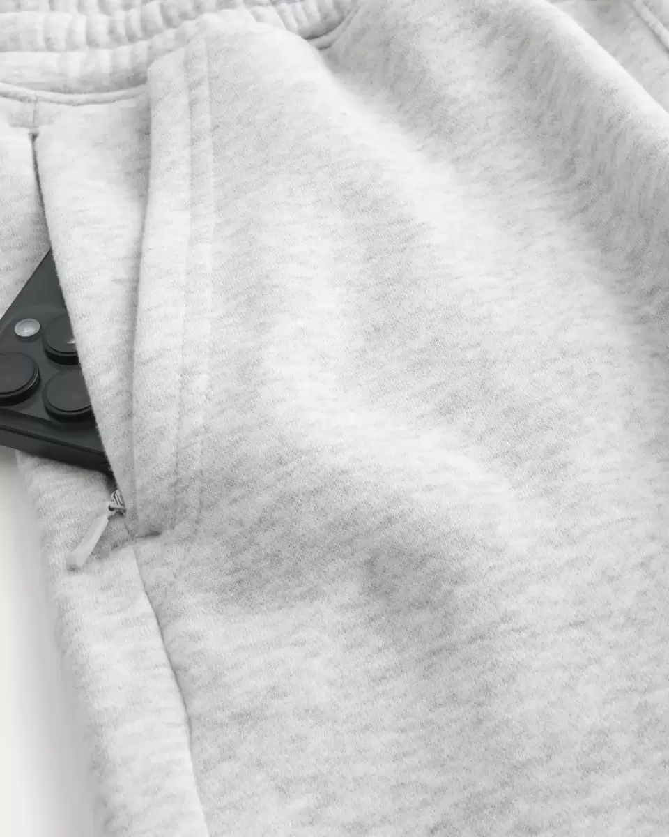 Super soft fleece shorts designed with a mid-thigh length and drawstring waist. Pockets, right zipper pocket. Imported.