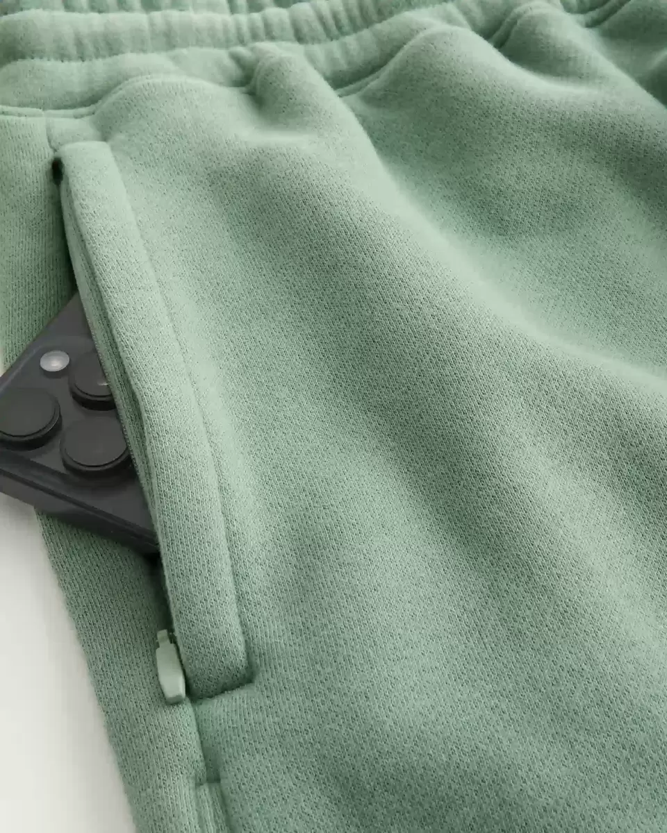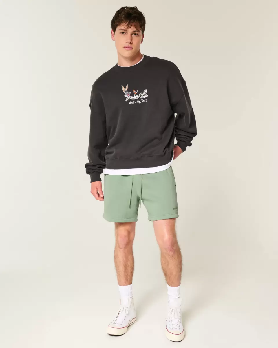 Super soft fleece shorts that hit mid-thigh, designed with a comfortable loose leg. Drawstring waist, pockets, right zipper pocket, embroidered logo detail. Imported.
