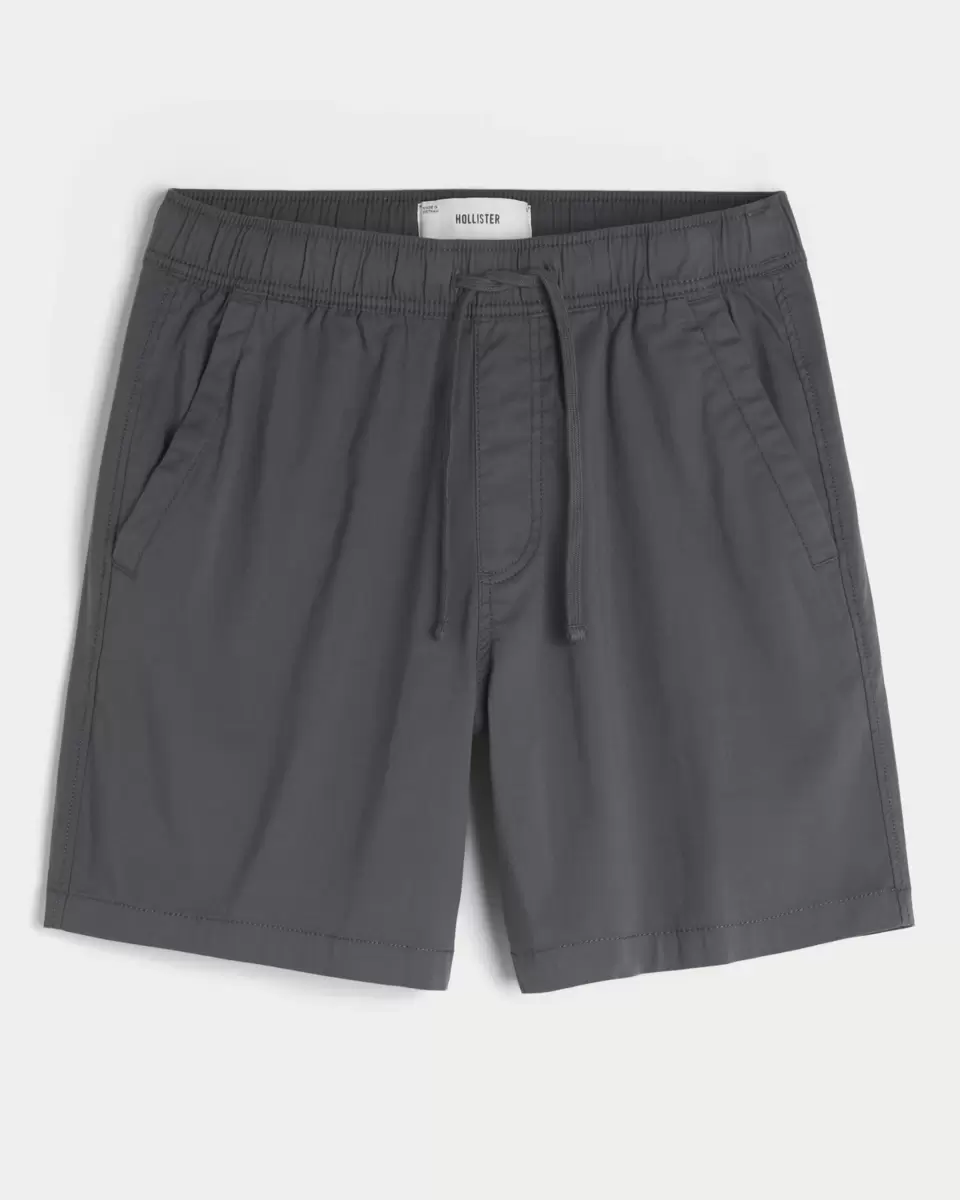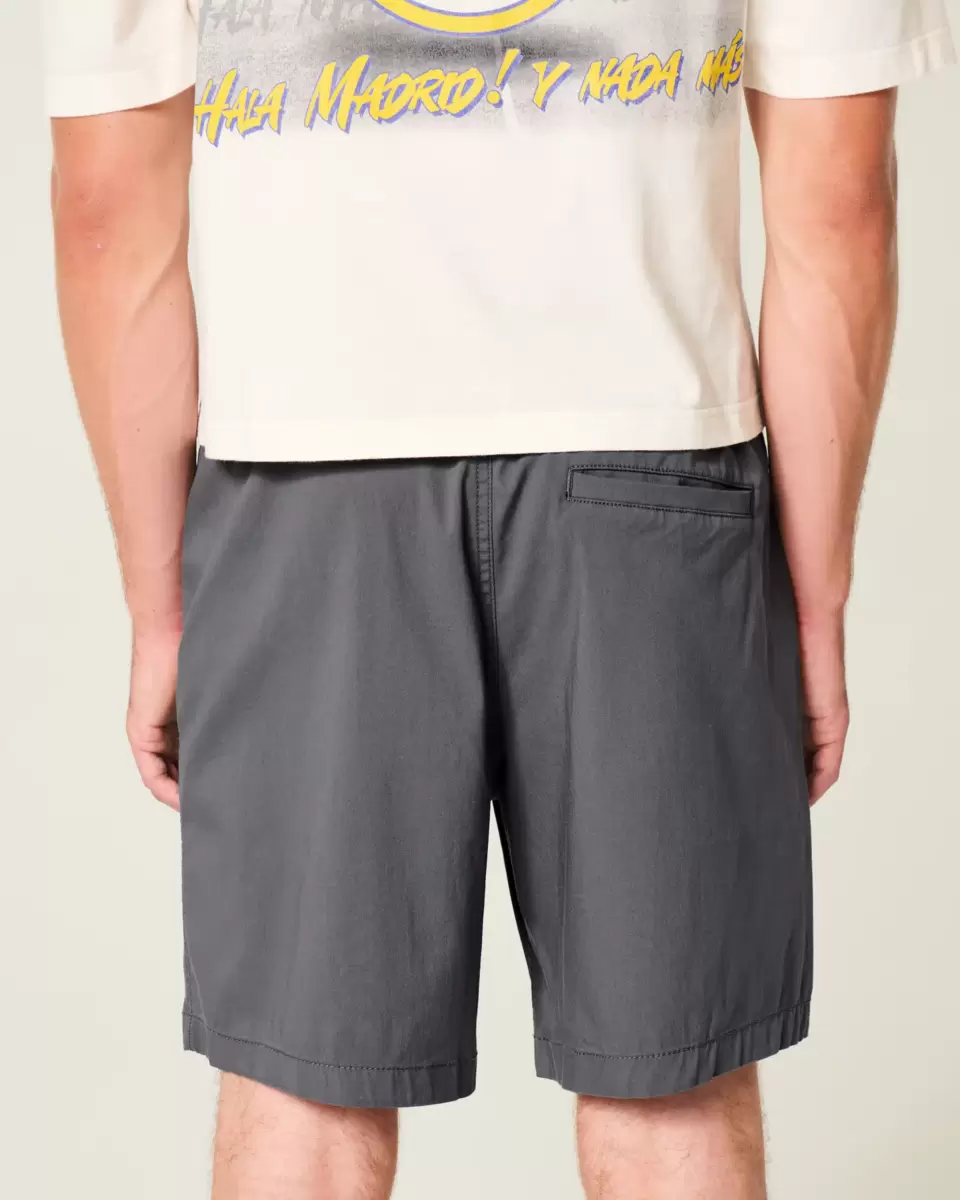 Comfortable twill shorts that hit above the knee. Drawstring waist, pockets. Imported.