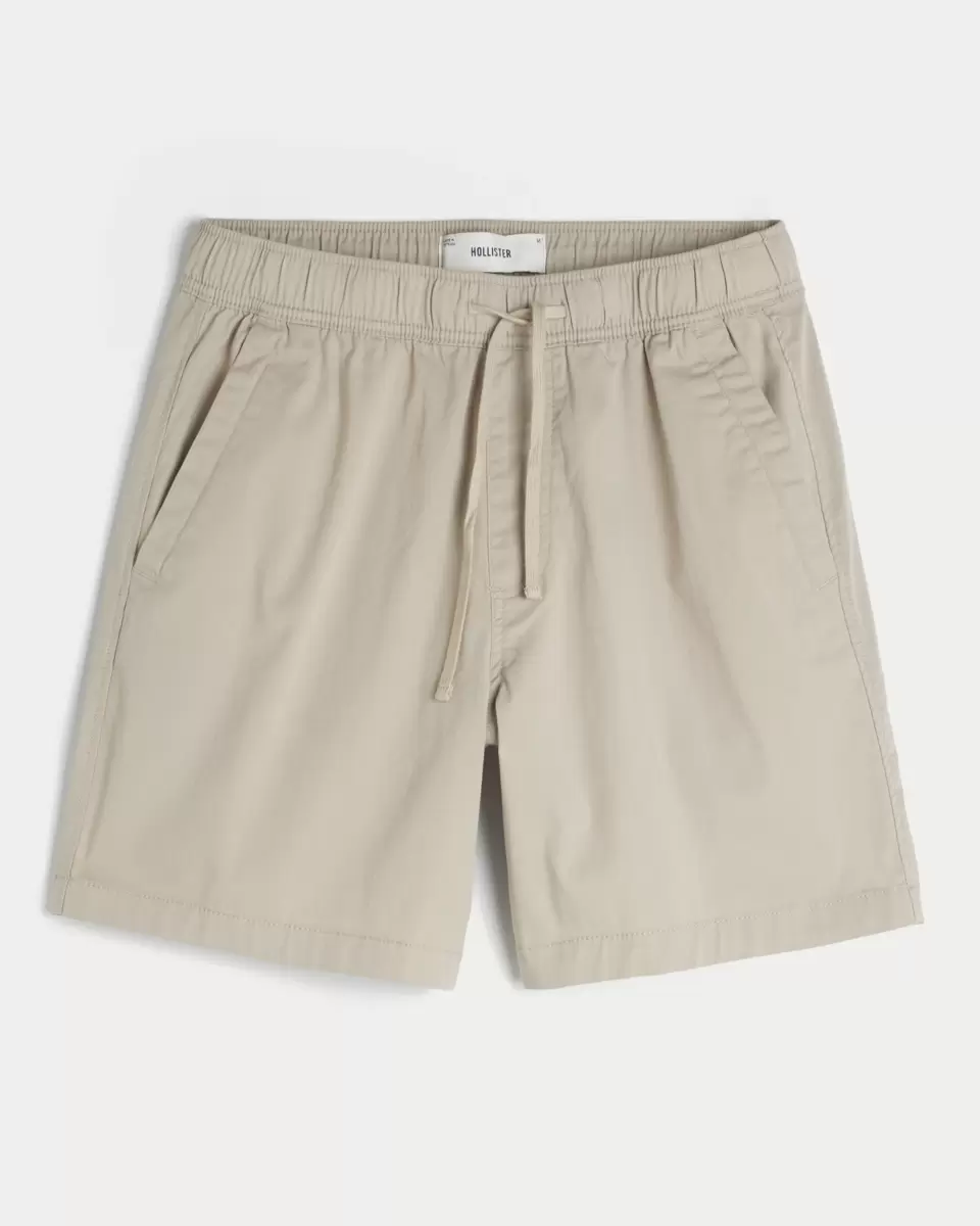 Comfortable twill shorts that hit above the knee. Drawstring waist, pockets. Imported.
