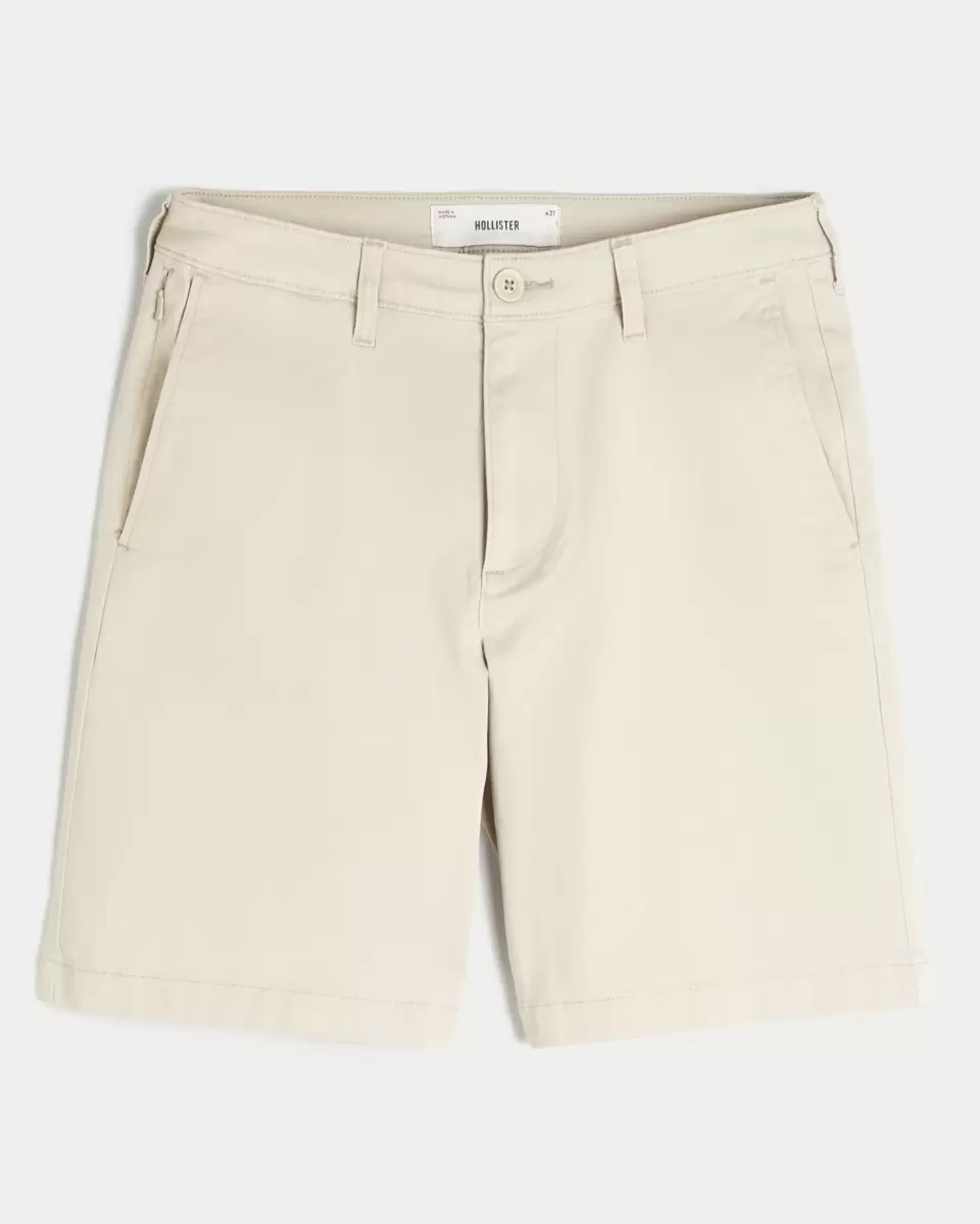 Comfortable, classic twill shorts designed with a classic flat-front silhouette. Pockets, right zipper pocket, at-the-knee length. Imported.
