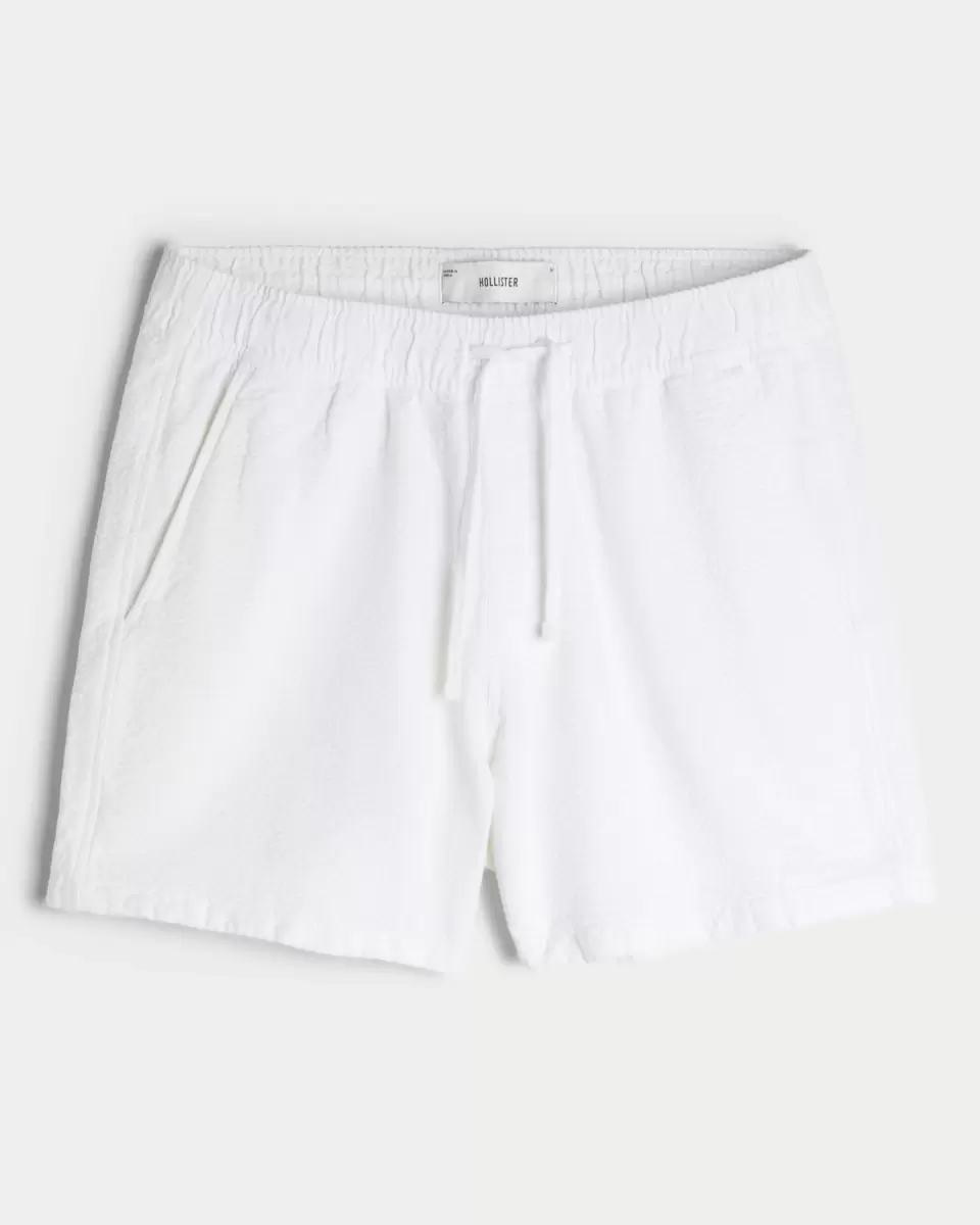 Mid-Thigh Linen-Blend Seersucker Shorts