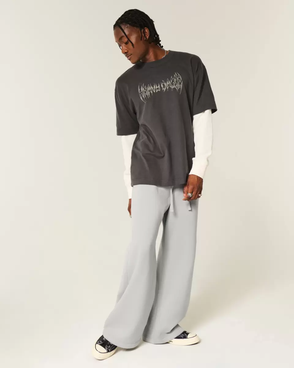 Super soft fleece sweatpants designed with a baggy leg, bootcut opening and drawstring waist. Pockets, right zipper pocket. Imported.