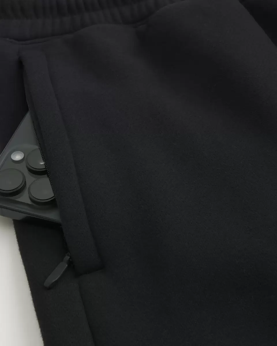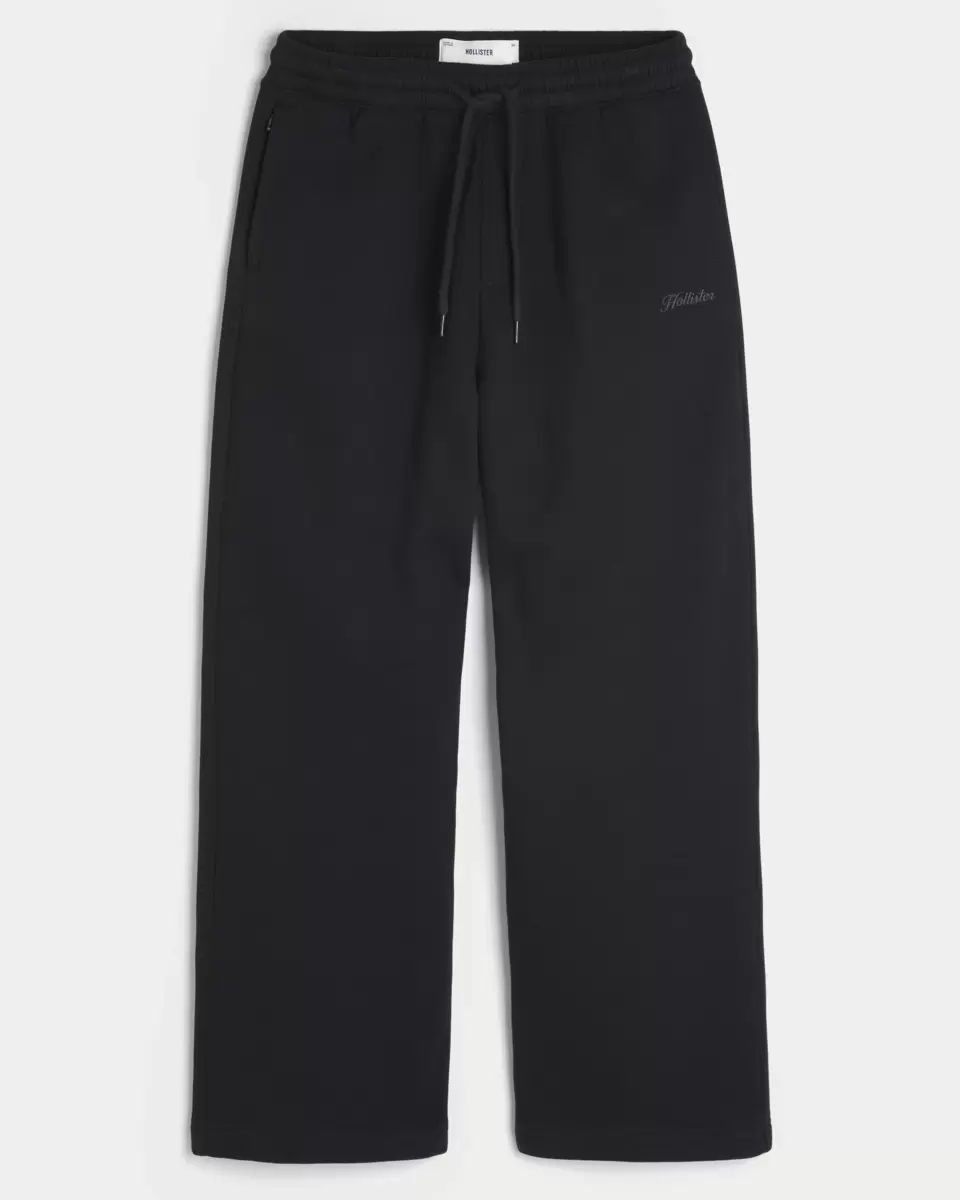 Comfortable fleece sweatpants with a super baggy leg and drawstring waist. Pockets, right zipper pocket, embroidered logo detail. Imported.