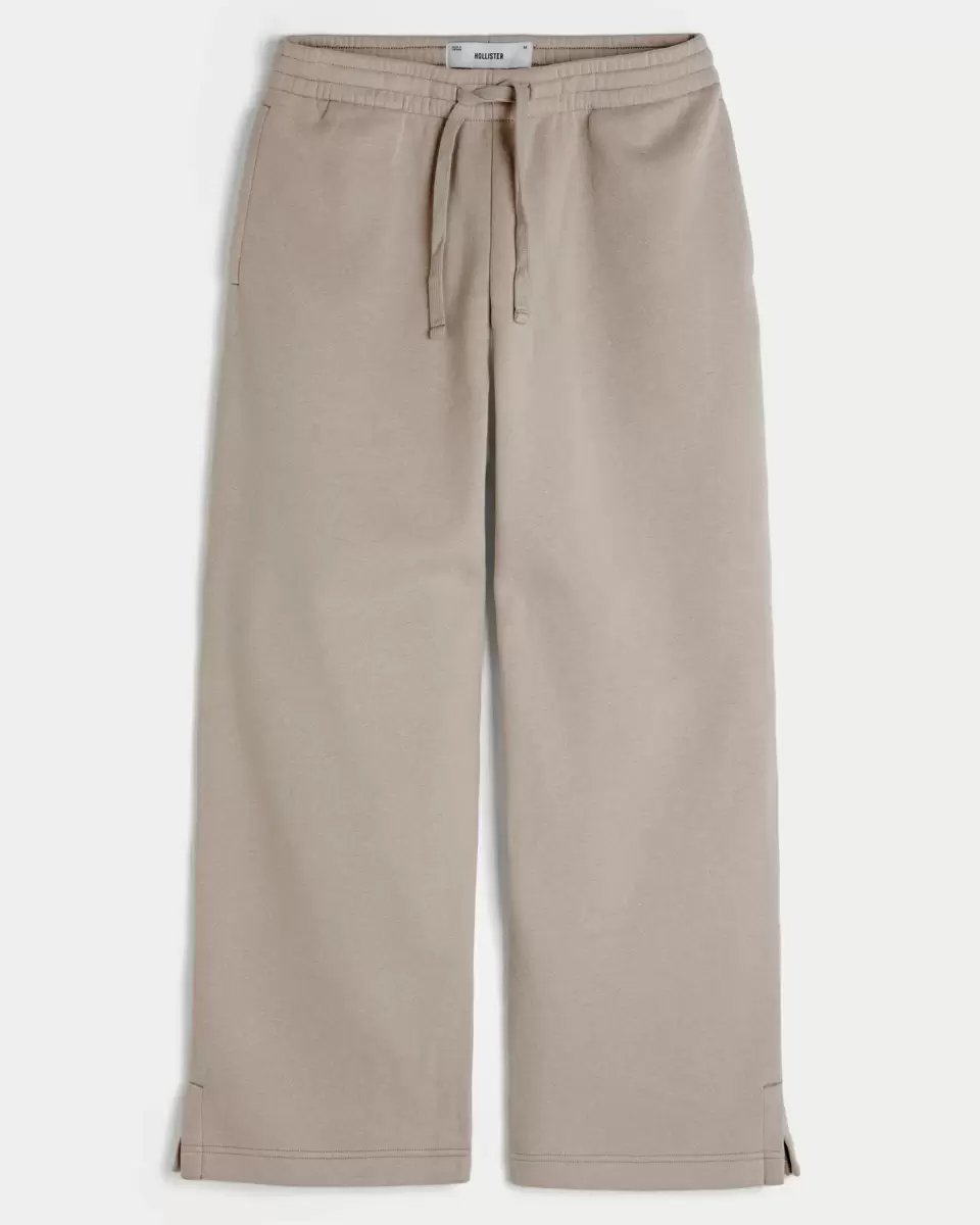 Super soft fleece sweatpants designed with a super baggy leg, featuring split hem details. Drawstring waist, pockets, right zipper pocket. Imported.