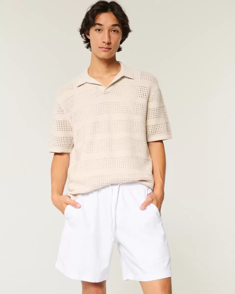 Ultra-comfortable shorts in a soft cotton-linen blend. Drawstring waist, pockets, 8″ inseam. Hits above the knee. Imported.