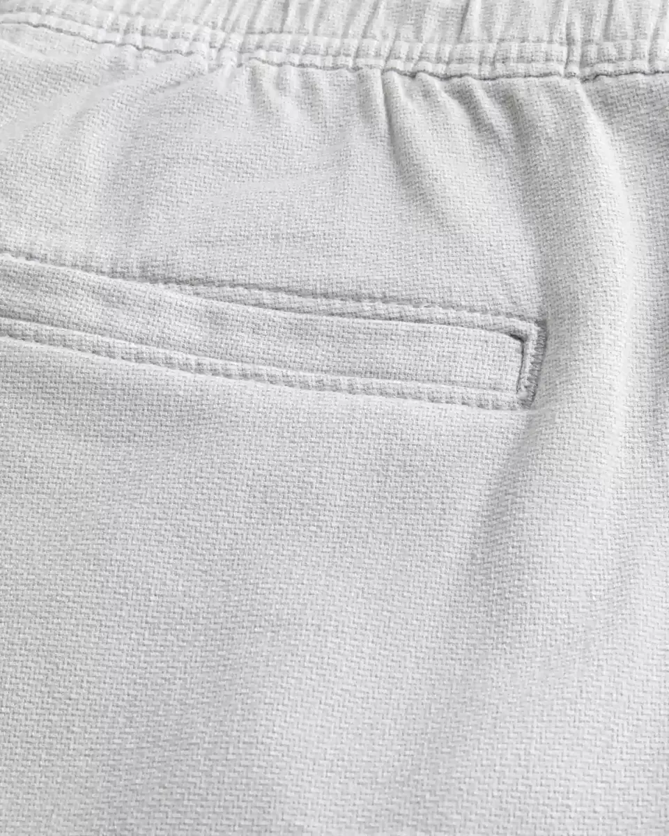 Ultra-comfortable shorts in a soft cotton-linen blend. Drawstring waist, pockets, 8″ inseam. Hits above the knee.
