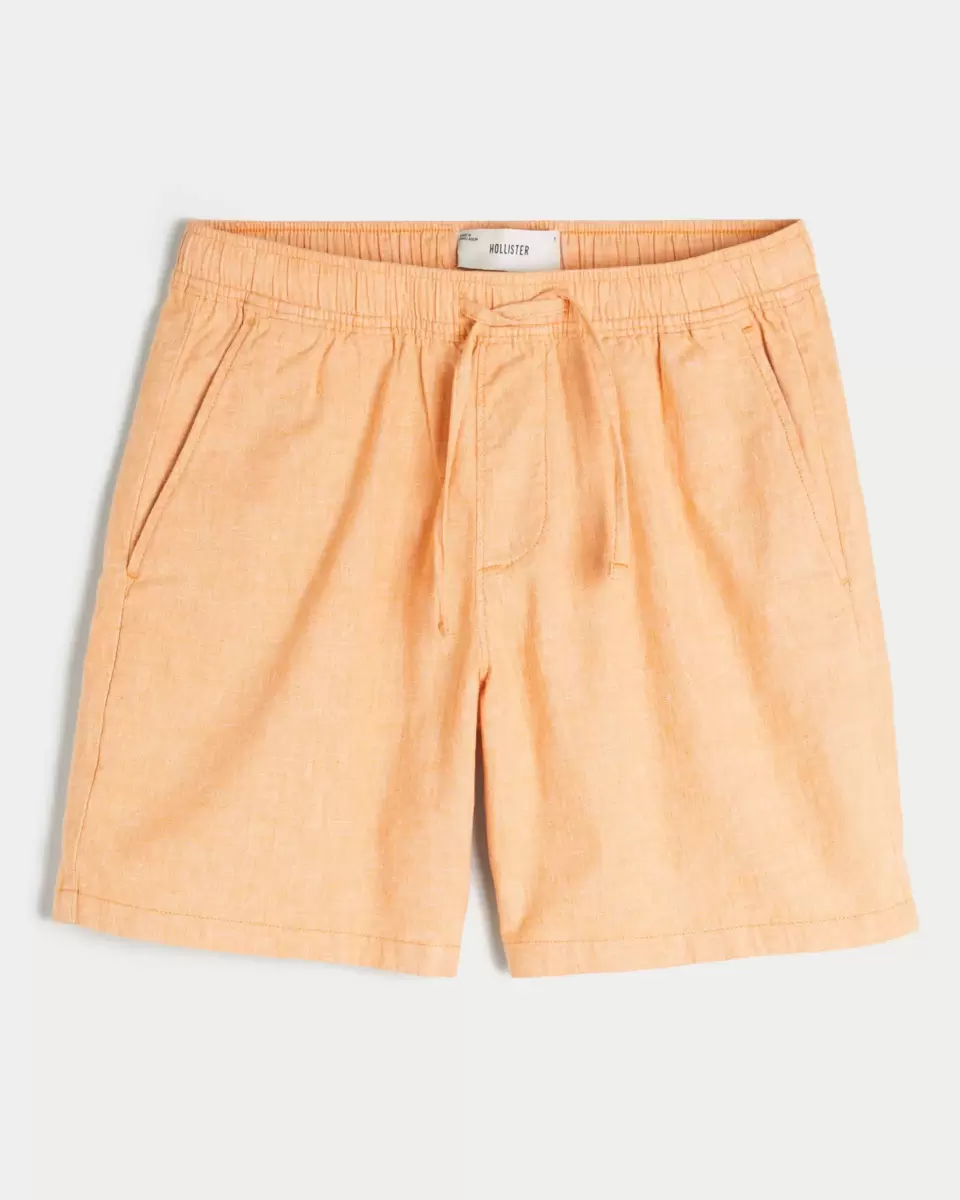 Ultra-comfortable shorts in a soft cotton-linen blend. Drawstring waist, pockets, 8″ inseam. Hits above the knee. Imported.