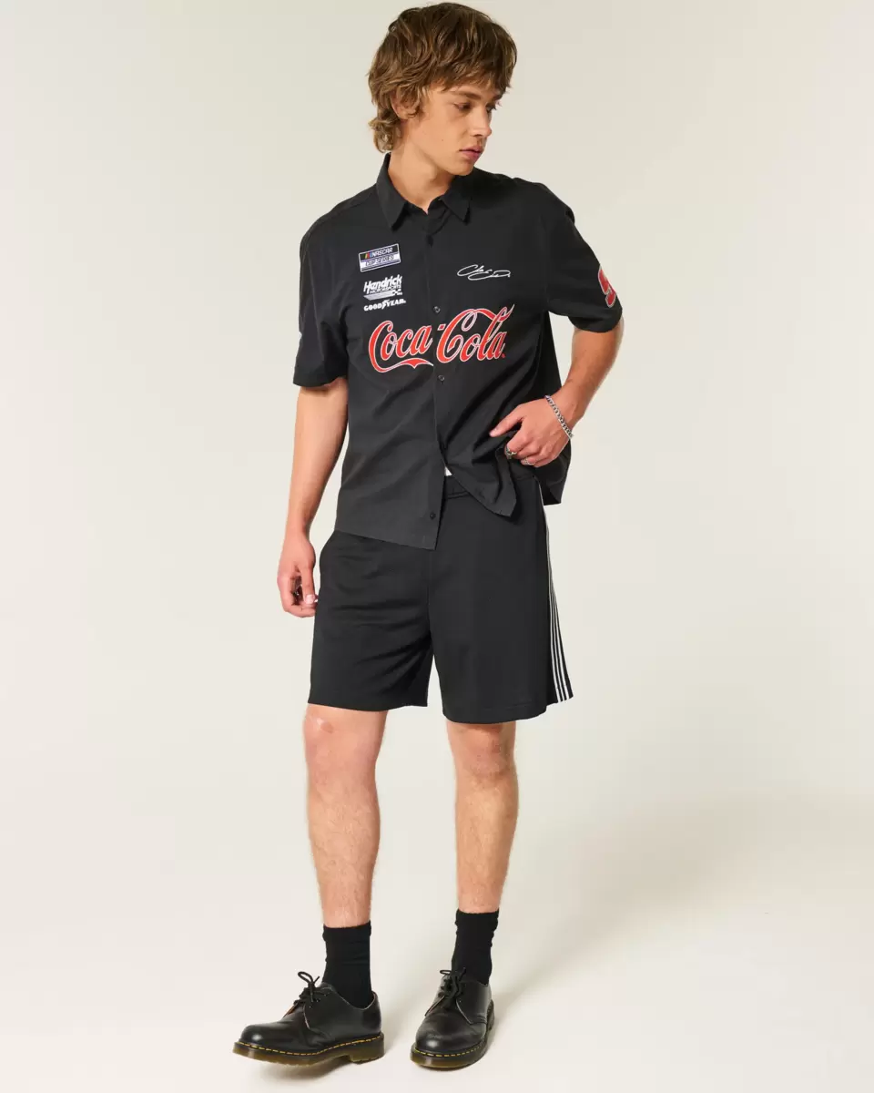 Comfortable basketball in soft mesh fabric, with side taping. Banded waist, pockets.