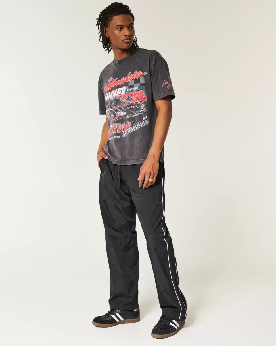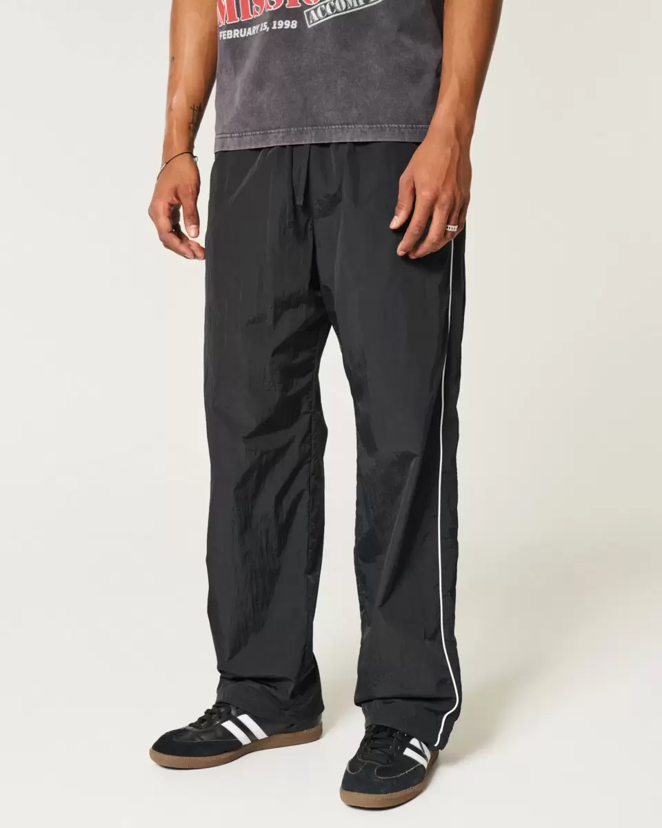 Ultra-comfortable track pants with a drawstring waist and side piping. Pockets, baggy leg.
