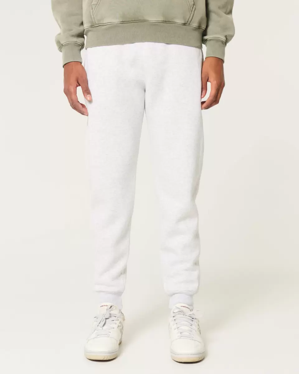 Super soft fleece joggers with a drawstring waist, banded hems and embroidered logo icon near the waist. Pockets. Imported.