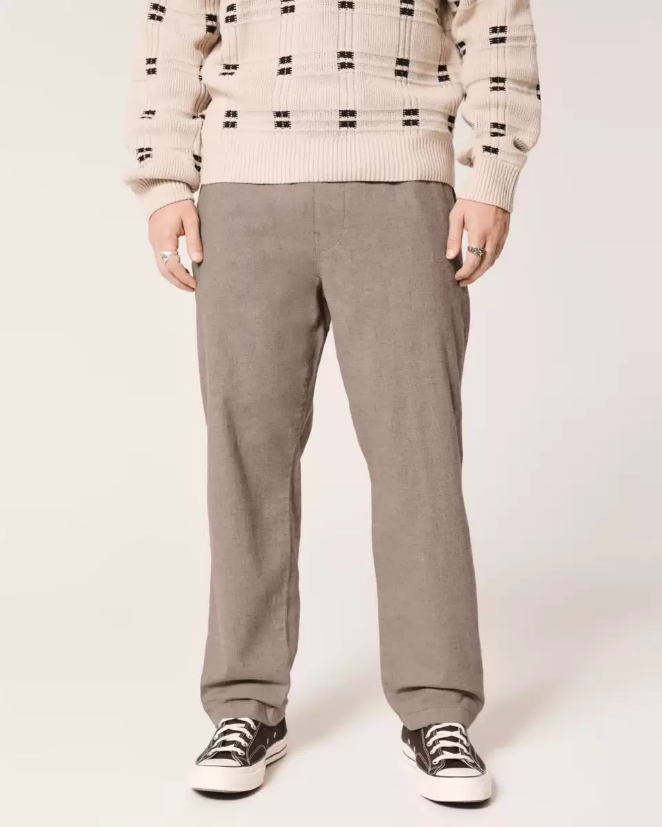 Comfortable pants in a soft linen blend, designed with a pull-on drawstring waist and loose leg. Pockets. Imported.