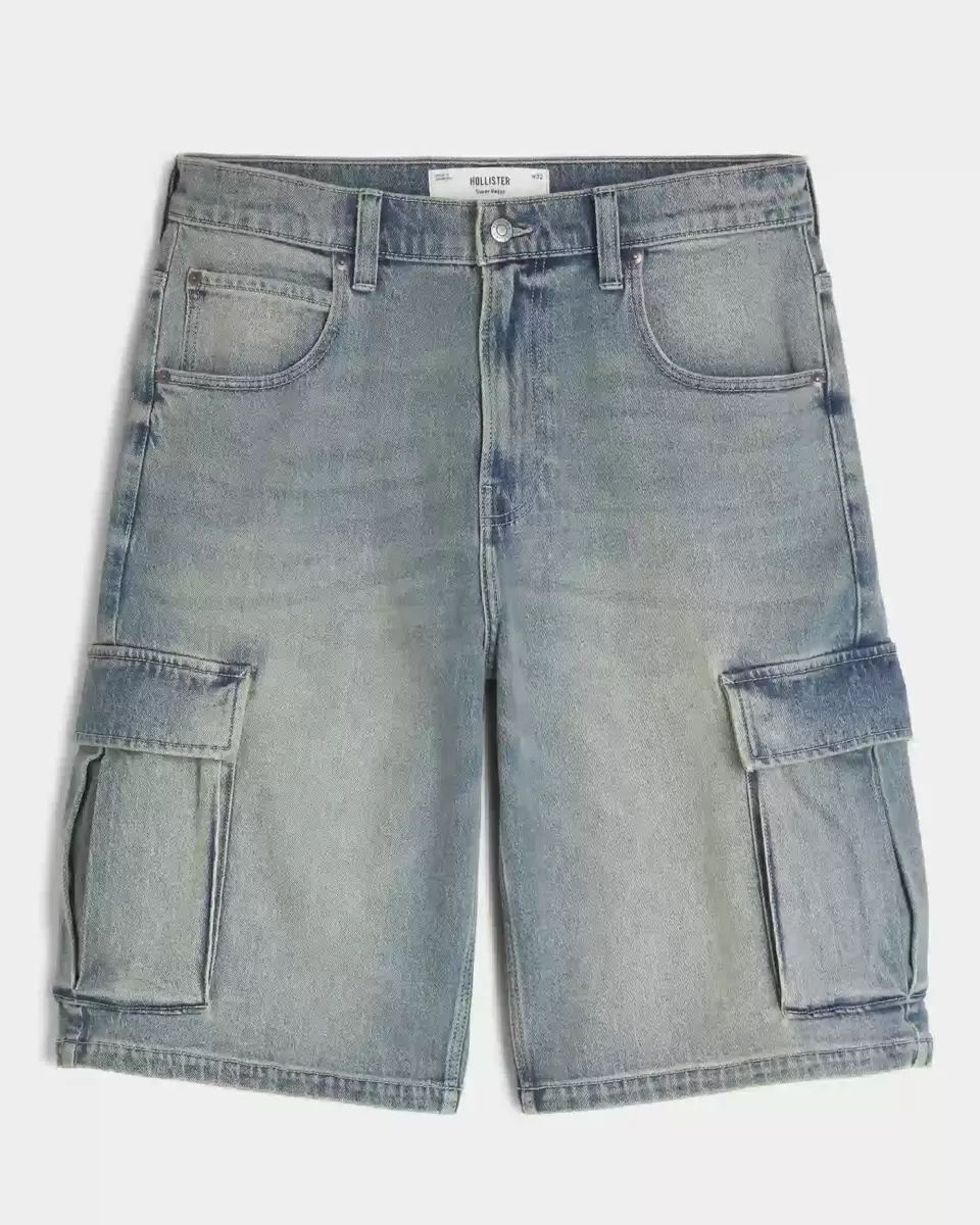 Medium Wash Super Baggy Denim Cargo Shorts