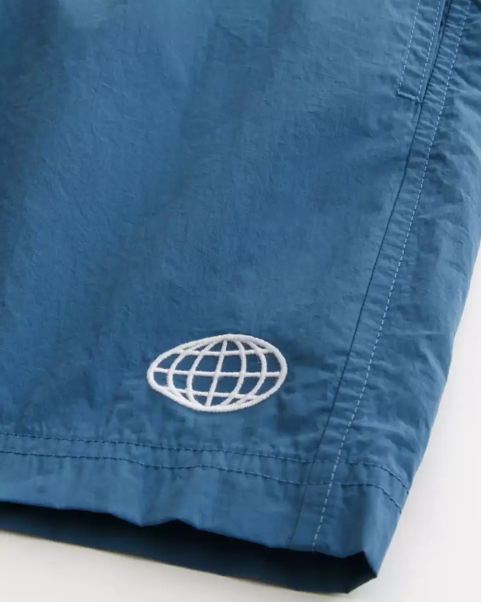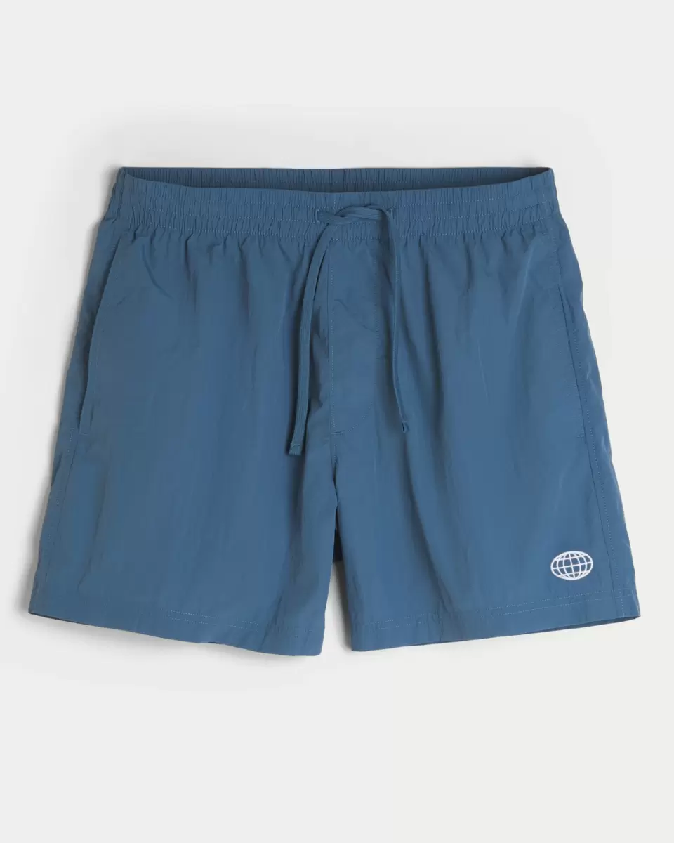 Classic soccer shorts that hit mid-thigh with an embroidered icon at the left leg. Drawstring waist, pockets. Imported.