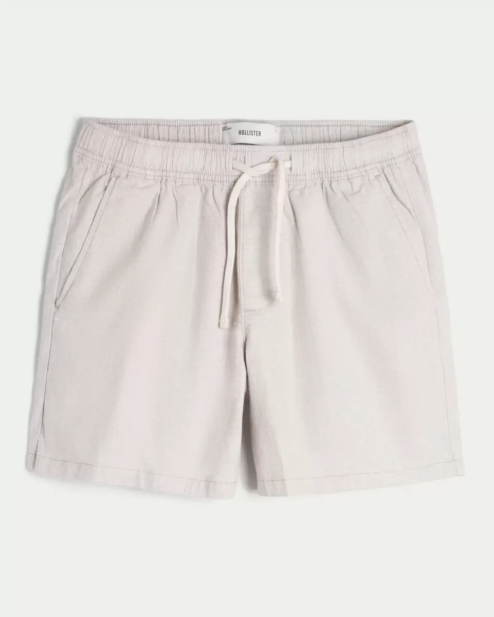 Comfortable shorts in a soft linen blend that hit mid-thigh, designed with a pull-on drawstring waist. Pockets. Imported.