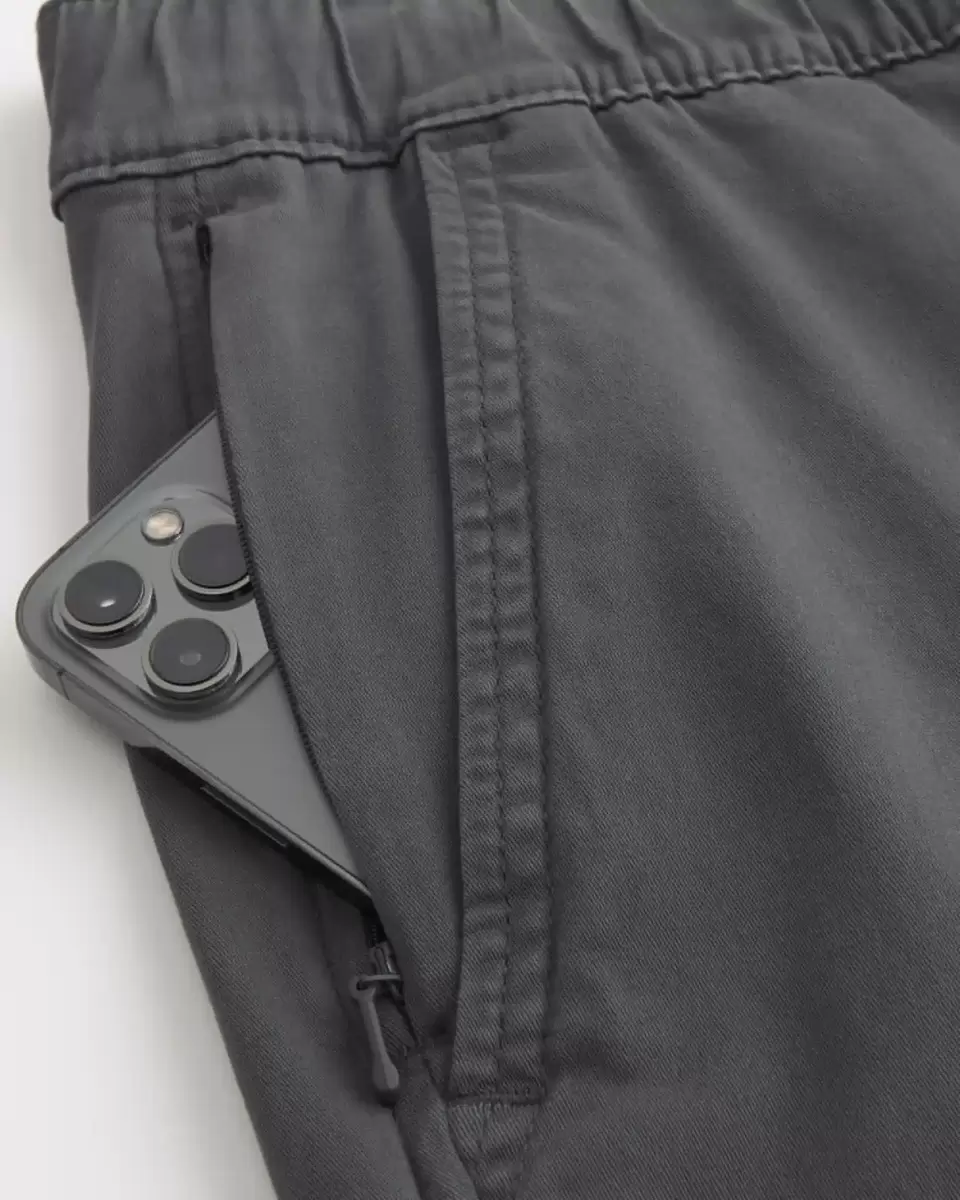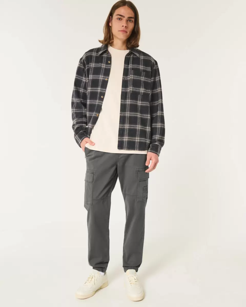 Comfortable joggers in twill fabric, designed with a relaxed leg and side cargo pockets. Drawstring waist, banded hems, right zipper pocket. Imported.