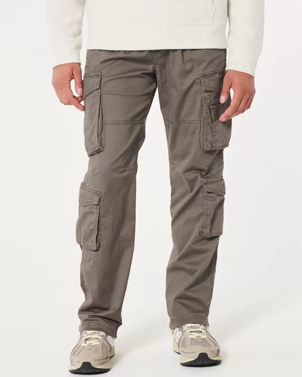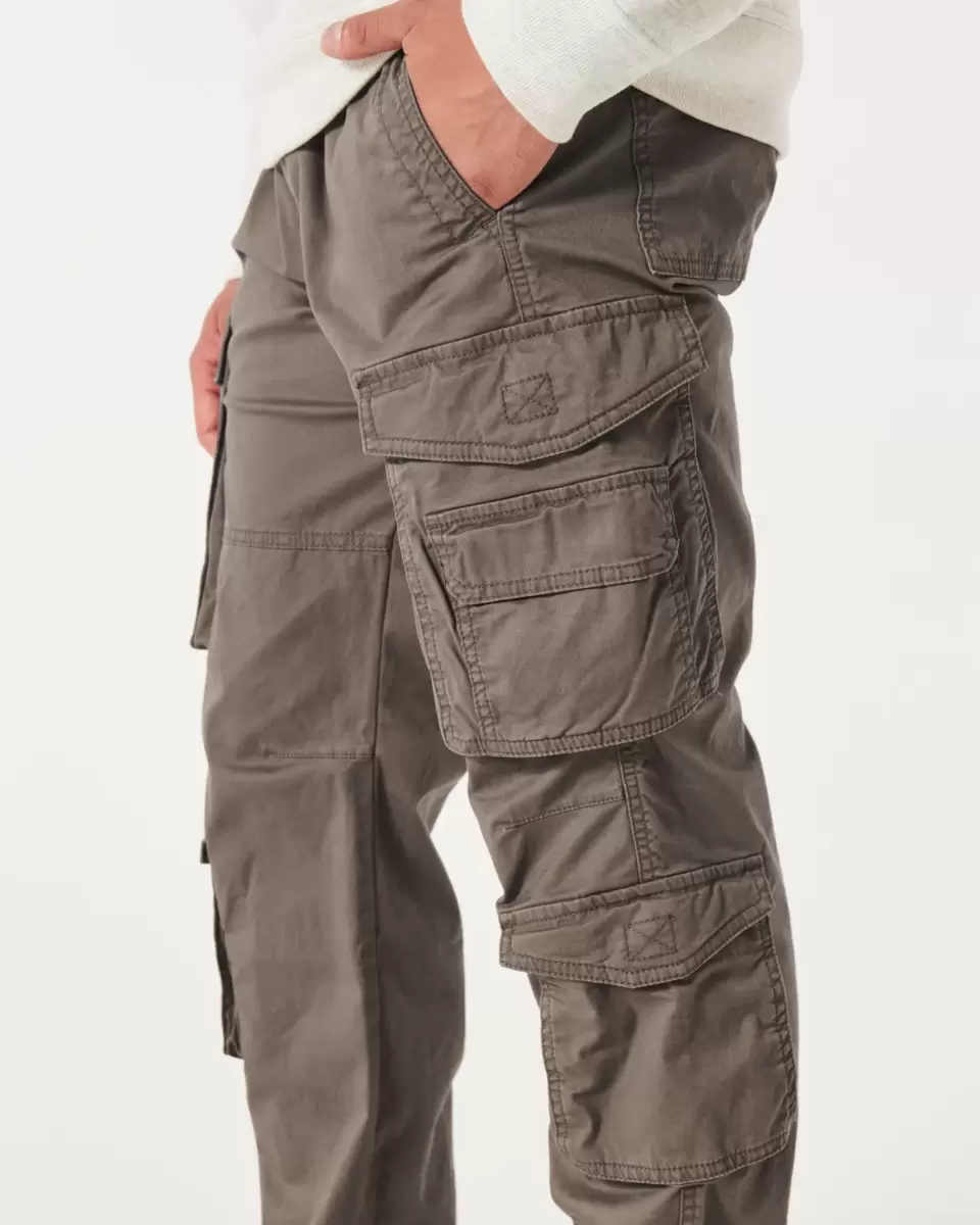 Ultra-comfortable cargo pants designed with a slim straight leg and double side utility pockets. Front pockets, pull-on style drawstring waist. Made with Hollister Epic Flex twill fabric. Imported.