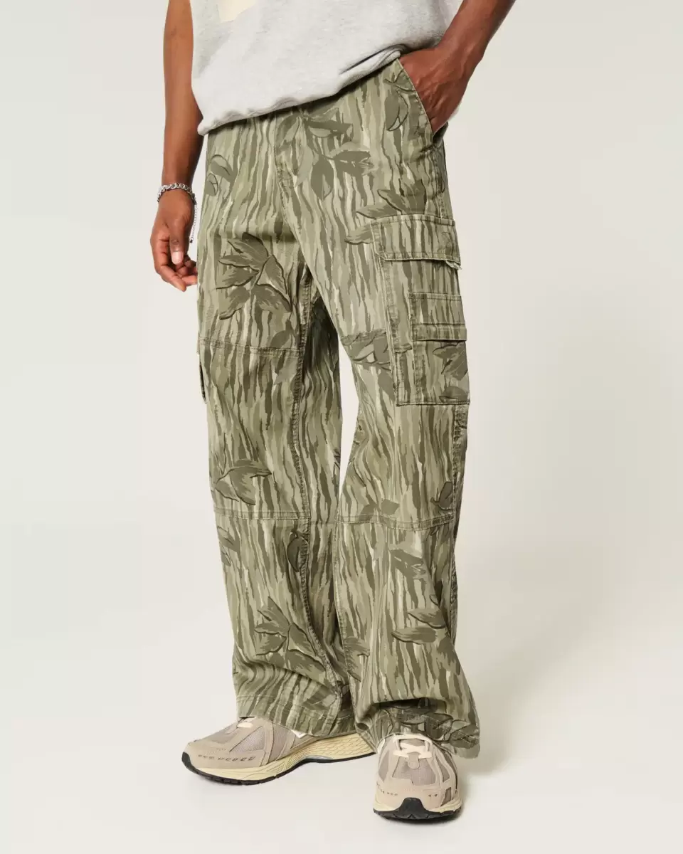 Classic, comfortable pants with stretch, designed with a super baggy leg and side cargo pockets. Imported.