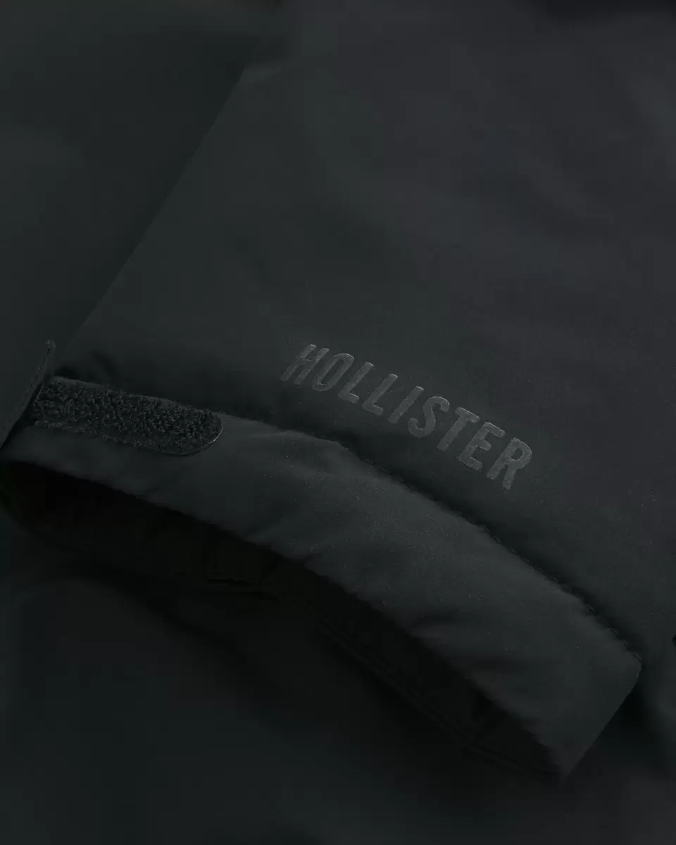 An insulated shell jacket with a hood, chest zipper pockets and front zipper pockets. Adjustable velcro cuffs, full zip-up closure with snaps. Imported.