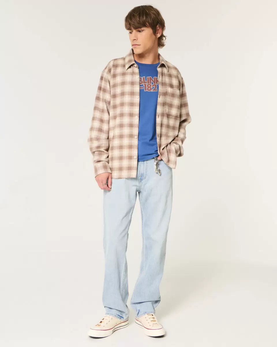Ultra-comfortable jeans in a light wash, designed with a loose leg from top to bottom. Fading.