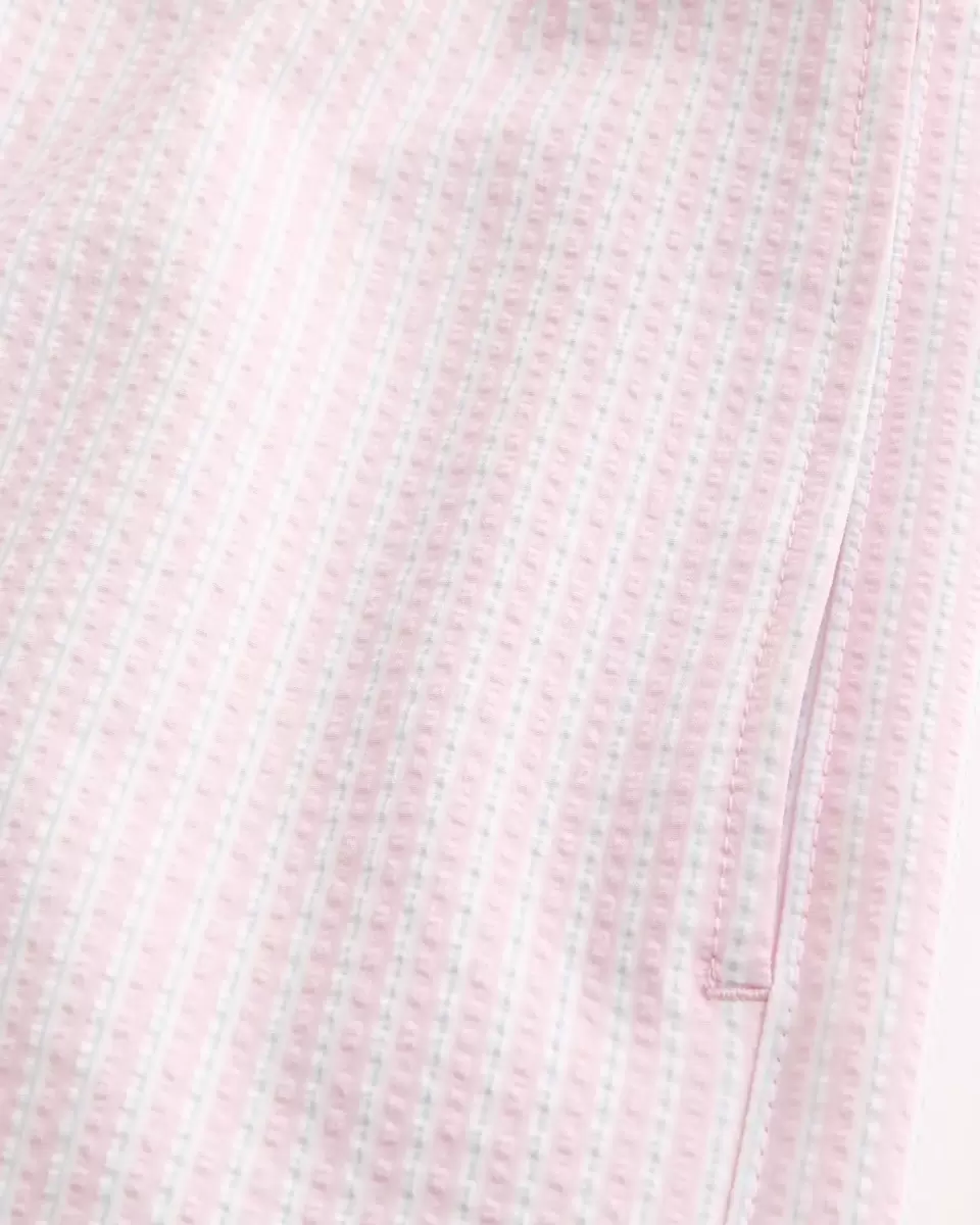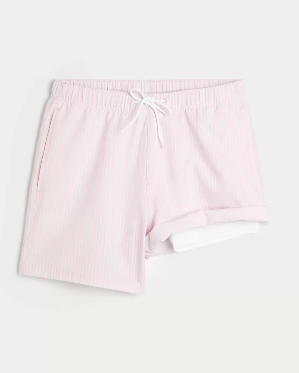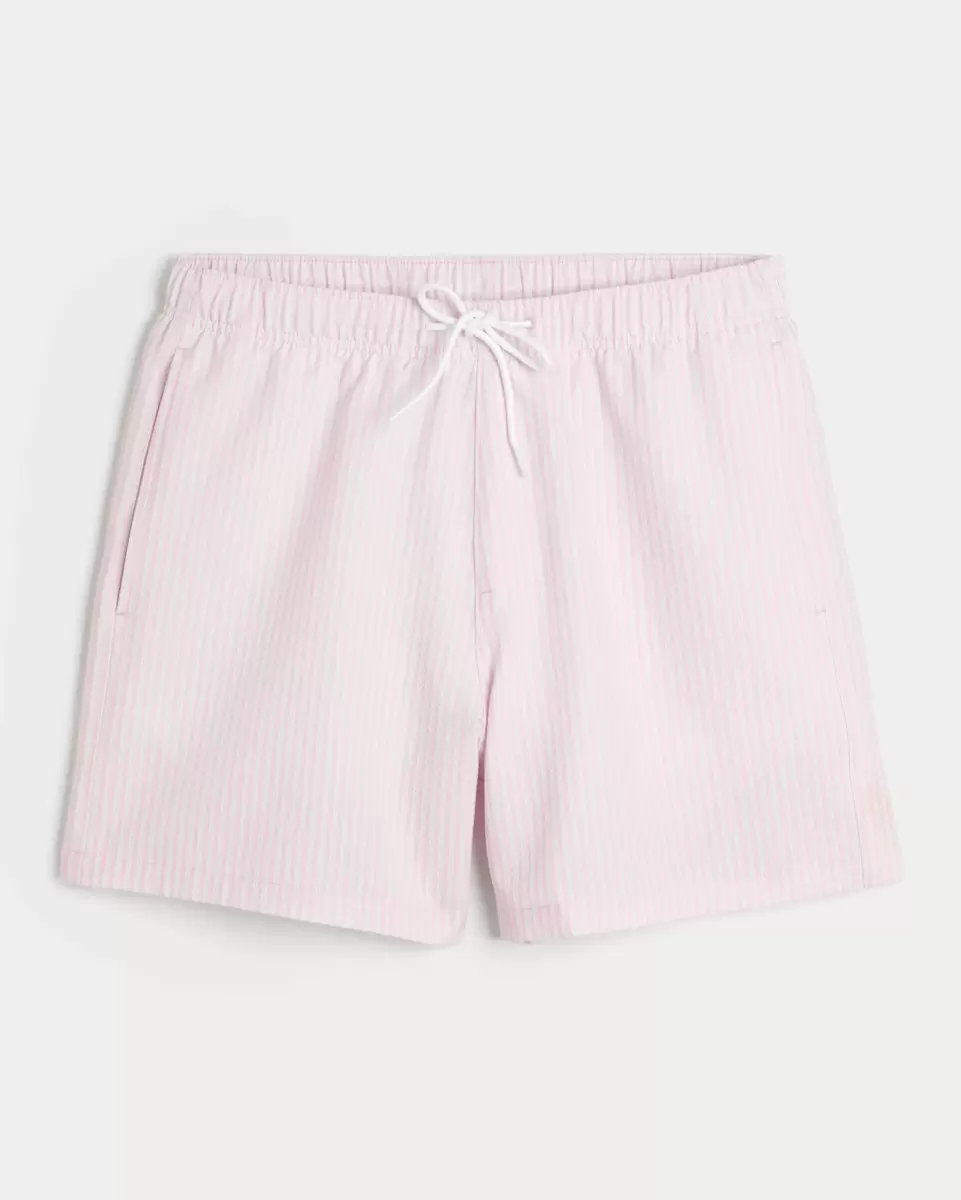 Shorter-length swim trunks that hit mid-thigh. Featuring comfortable 4-way stretch seersucker swim fabric and a 6″ inseam. Front pockets, mesh lining. Imported.
