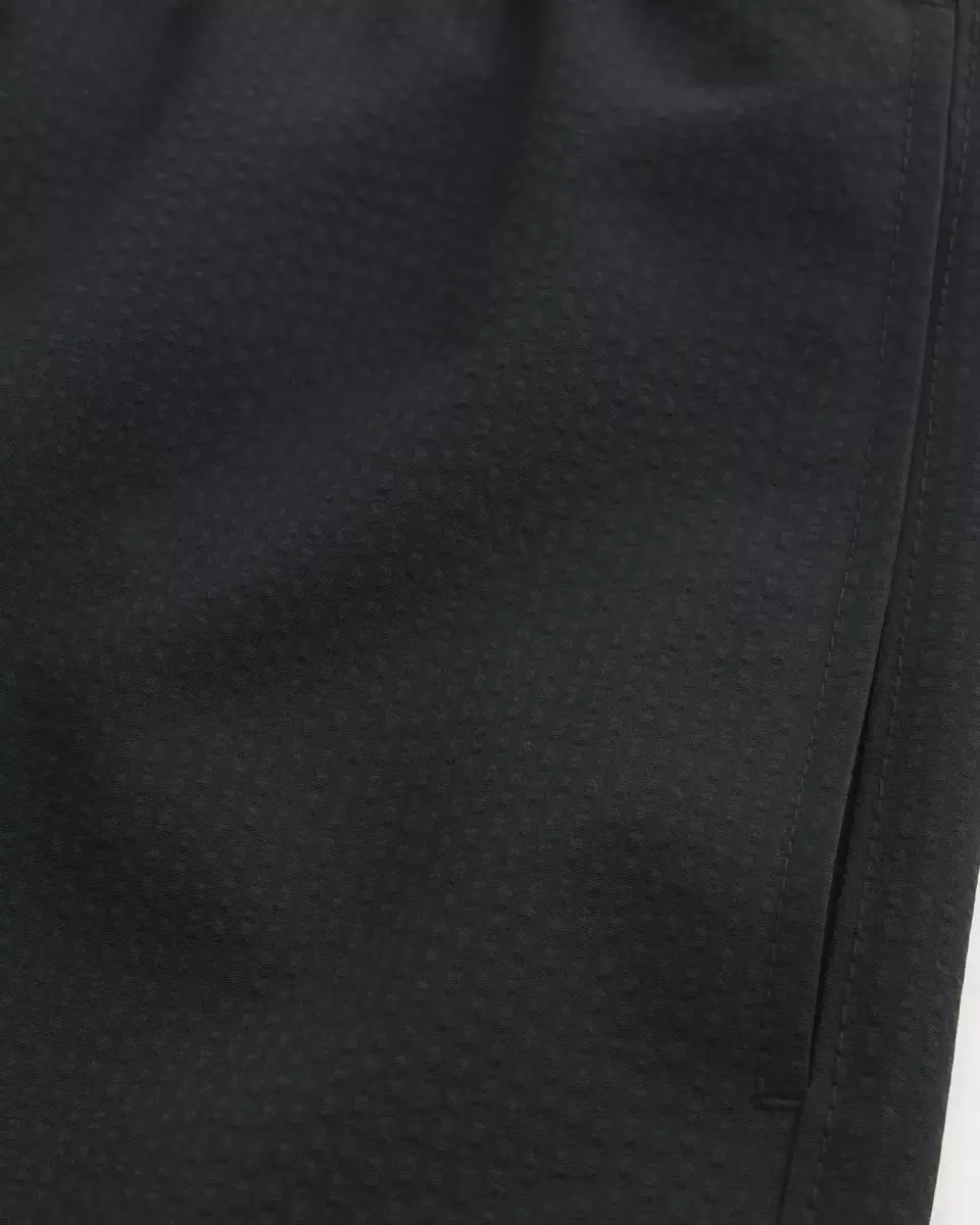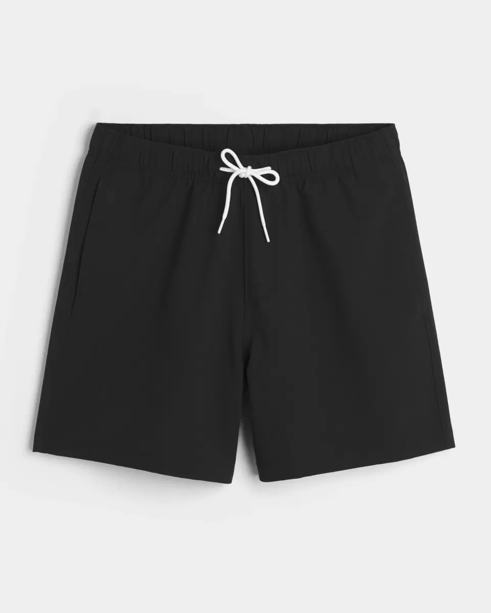 Shorter-length swim trunks that hit mid-thigh. Featuring comfortable 4-way stretch seersucker swim fabric and a 6″ inseam. Front pockets, mesh lining.