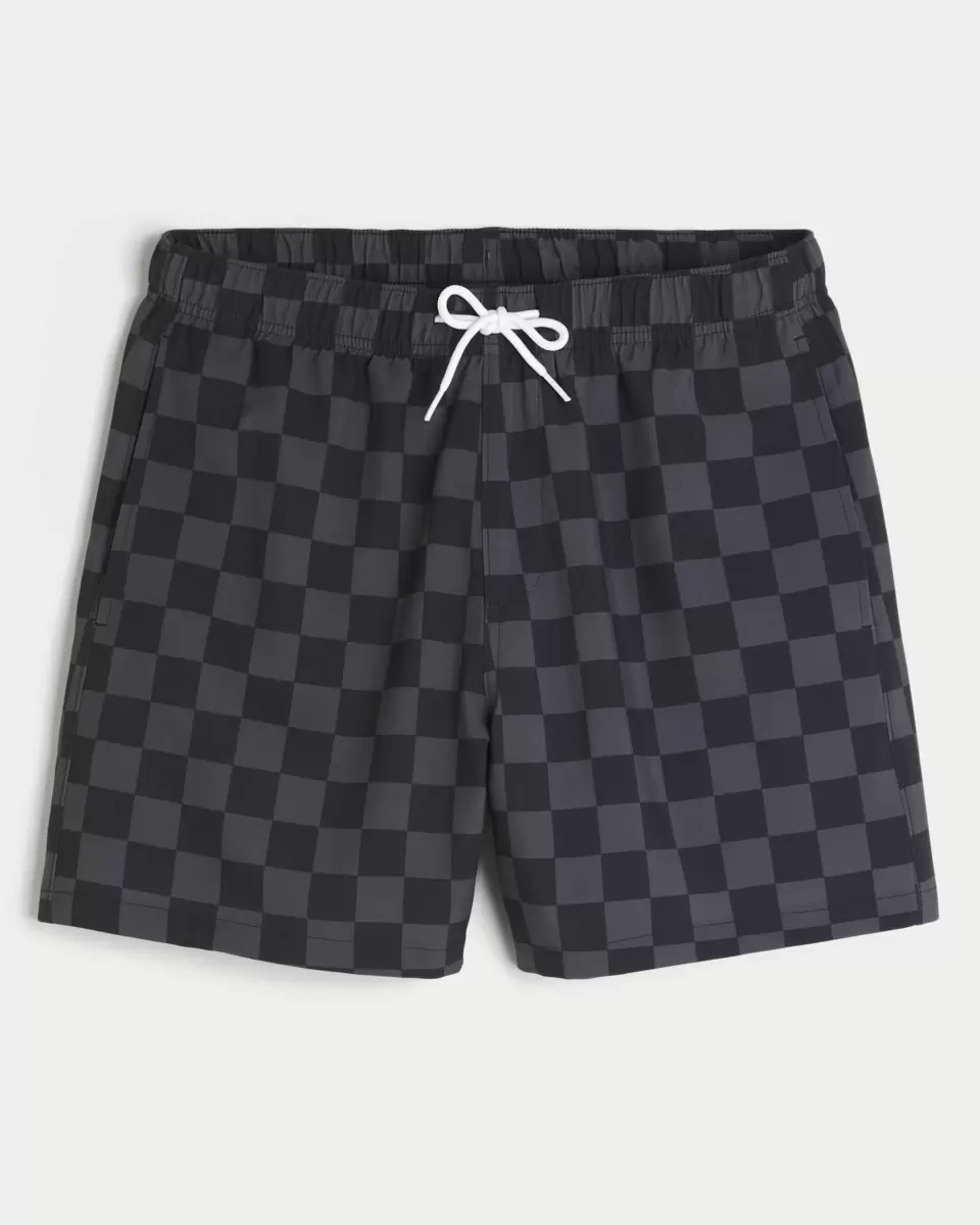 Shorter-length swim trunks that hit mid-thigh. Featuring comfortable 4-way stretch swim fabric and a 6″ inseam. Pockets. Imported. Imported.