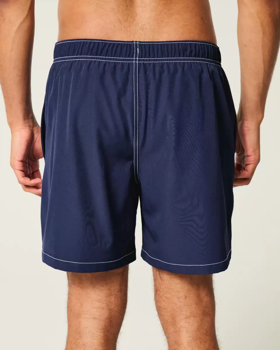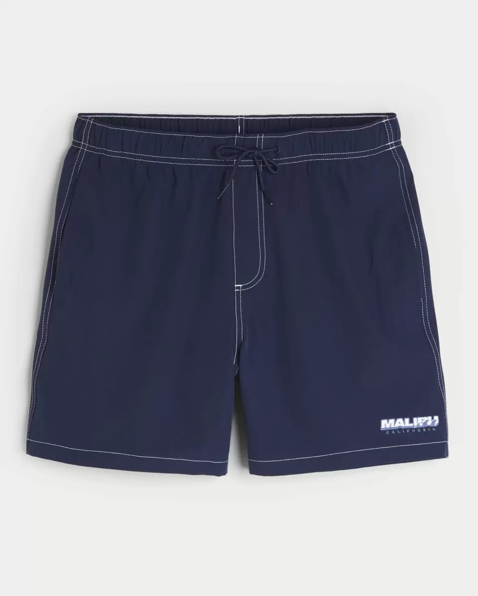 Shorter-length swim trunks that hit mid-thigh. Featuring comfortable 4-way stretch swim fabric and a 6″ inseam. Pockets, contrast stitching, embroidered Malibu California detail. Imported.
