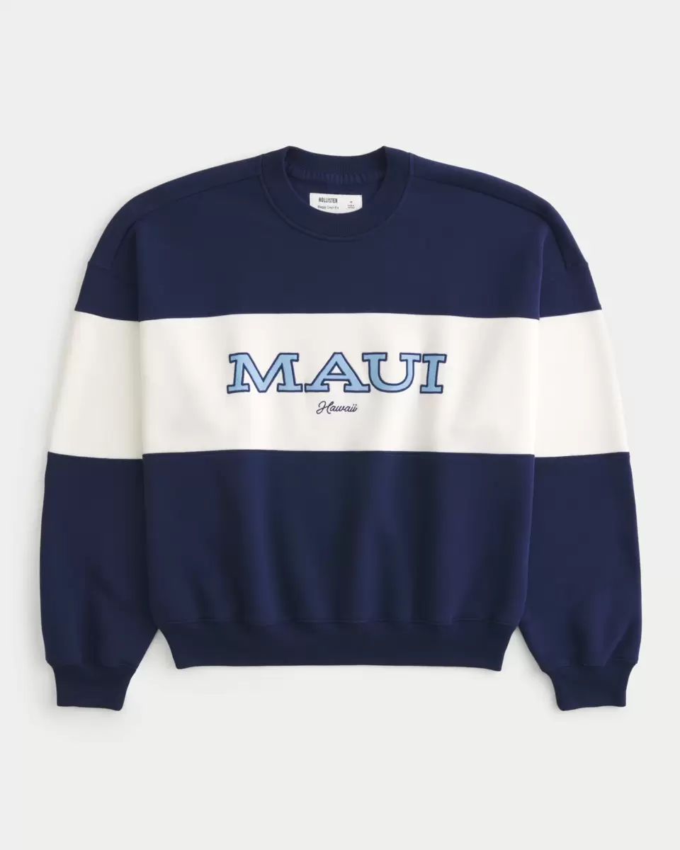 This super soft fleece sweatshirt features Maui Hawaii graphic embroidery and applique. Crew neckline, long sleeves. Baggy Cinch Fit.