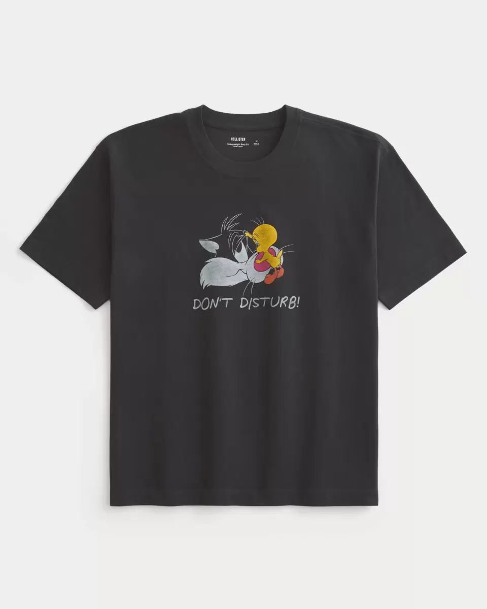 A super soft, heavyweight 100% cotton tee featuring official licensed Looney Tunes Sylvester and Tweety print graphics. Crew neckline, short sleeves. Boxy Fit.