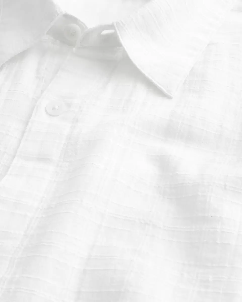 A classic, comfortable shirt with short sleeves and a textured pattern. Collar, full button closure. Boxy Fit. Imported.