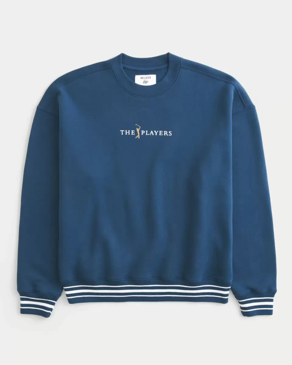 Made with super soft fleece fabric, this sweatshirt features official licensed The Players golf graphic embroidery and a crew neckline. Tipped hems, long sleeves. Boxy Fit. Imported.